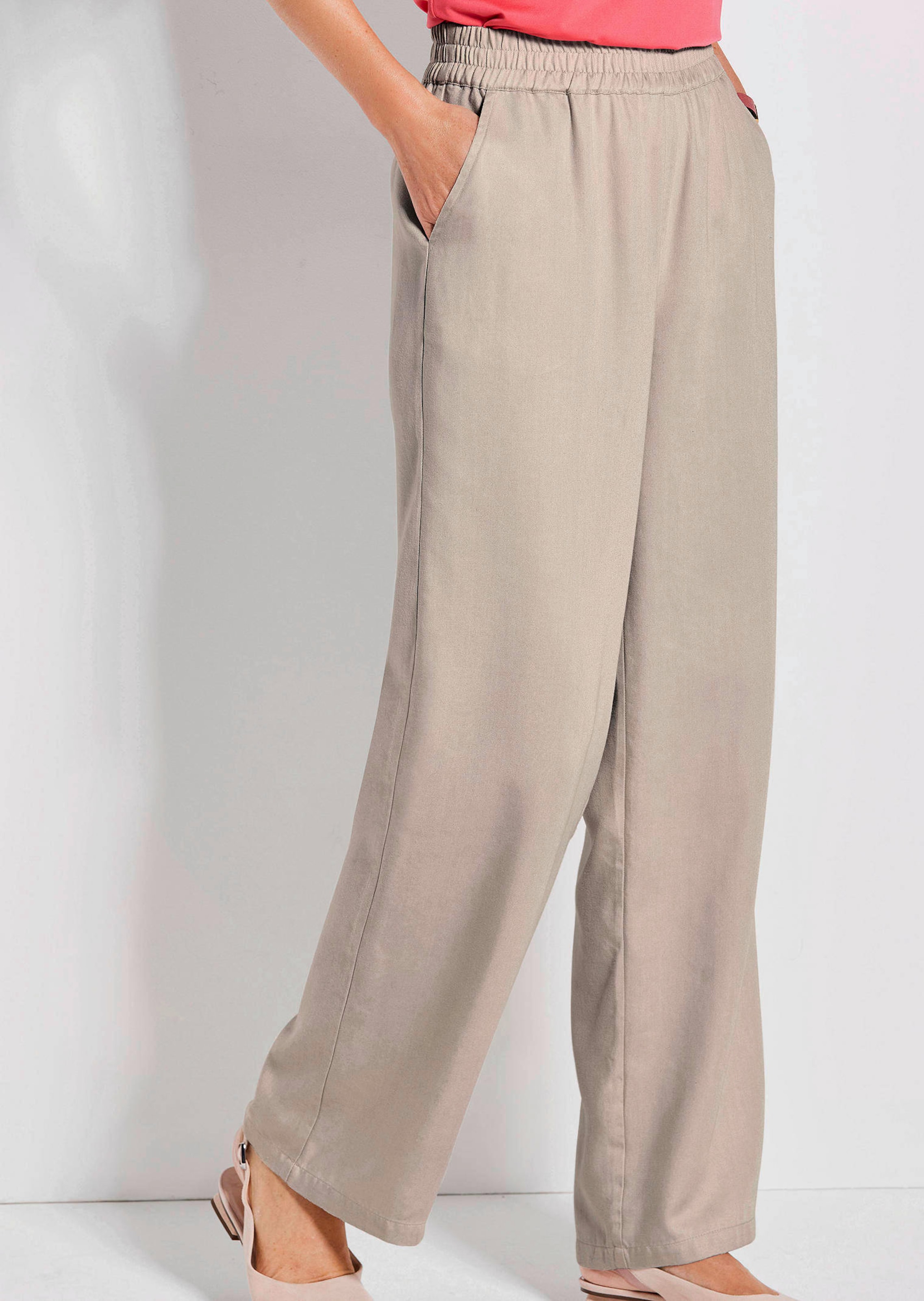 VERA-housut, joissa täysin joustava vyötärönauha. Pehmeästi laskeutuva Tencel muodostaa kauniin siluetin ja saa leveät lahkeet heilumaan tyylikkäästi. Käytännölliset sivutaskut lisäävät mukavuutta. Reilu malli tarjoaa korkean käyttömukavuuden ja vie sinut kevyesti läpi lämpimän vuodenajan. Lahkeensuun ympärys noin 54 cm. Leveät lahkeet.