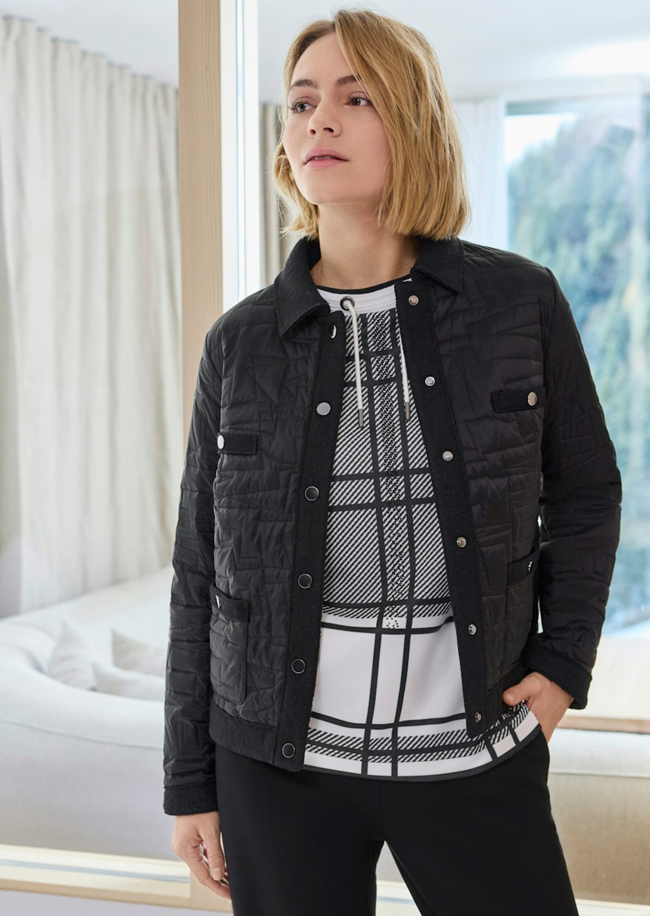 Blazer BARBARA LEBEK réalisé dans un mix fascinant de matelassage léger et de tissu foulé. Look décontracté pour l’intérieur et l’extérieur, avec teneur élevée en laine garantissant un bien-être de tous les instants. Petit col, patte de boutonnage pressionnée, deux poches et deux poches poitrine. Un modèle tendance, facile à combiner avec de nombreuses tenues ! Longueur env. 64 cm en 46.