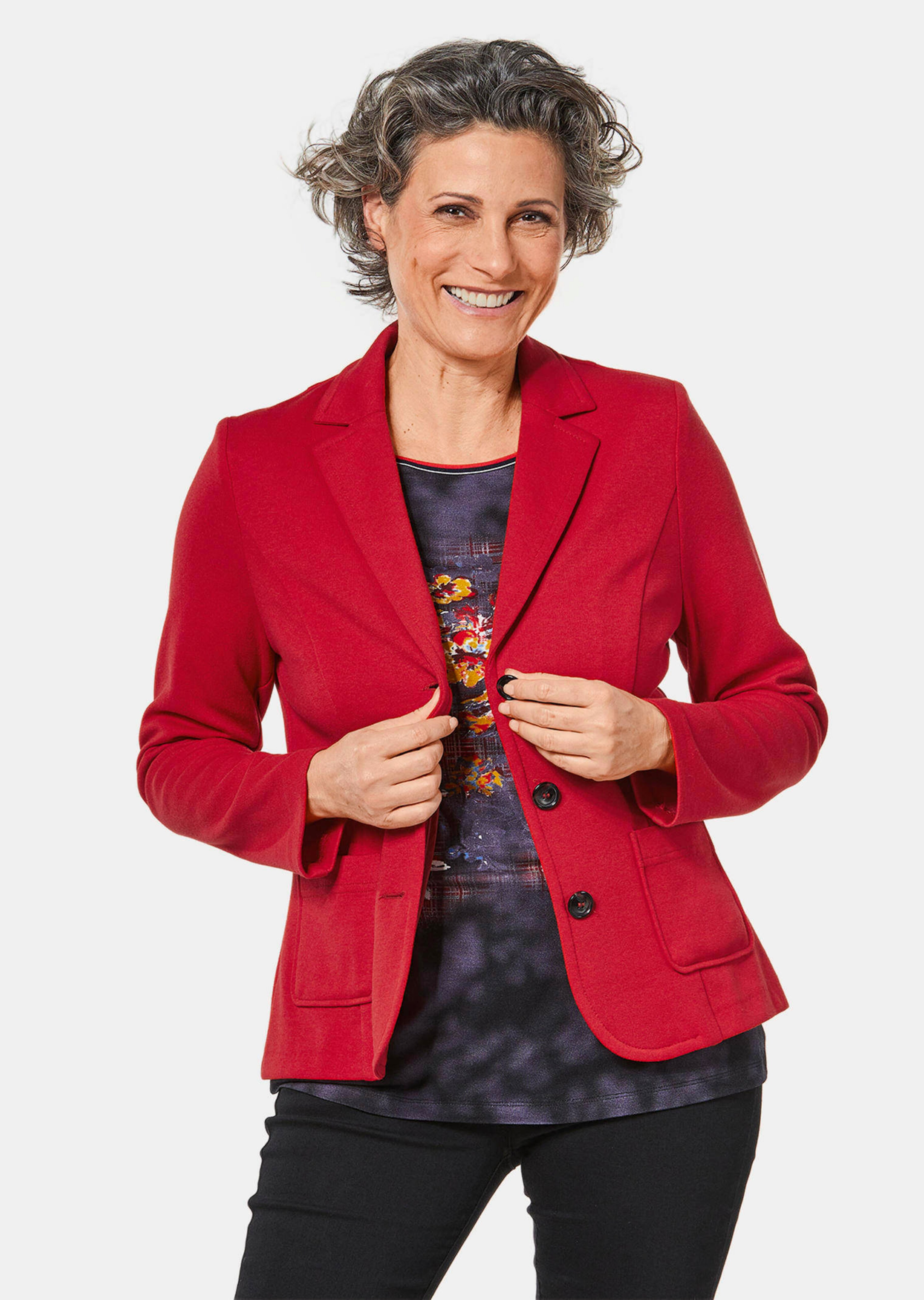 Quelle que soit l’occasion, quelle que soit la saison, vous pouvez compter sur ce blazer en jersey aussi chic que pratique : avec un bustier en été, un T-shirt à manches longues en automne ou un pull à col roulé en hiver. Quasiment infroissable et agréablement léger, il sait également se rendre indispensable en voyage. Très belle finition, bords passepoilés, deux poches plaquées, col à revers, coutures princesse pour une silhouette superbe. Longueur env. 65 cm en 46, env. 61 cm en 23.