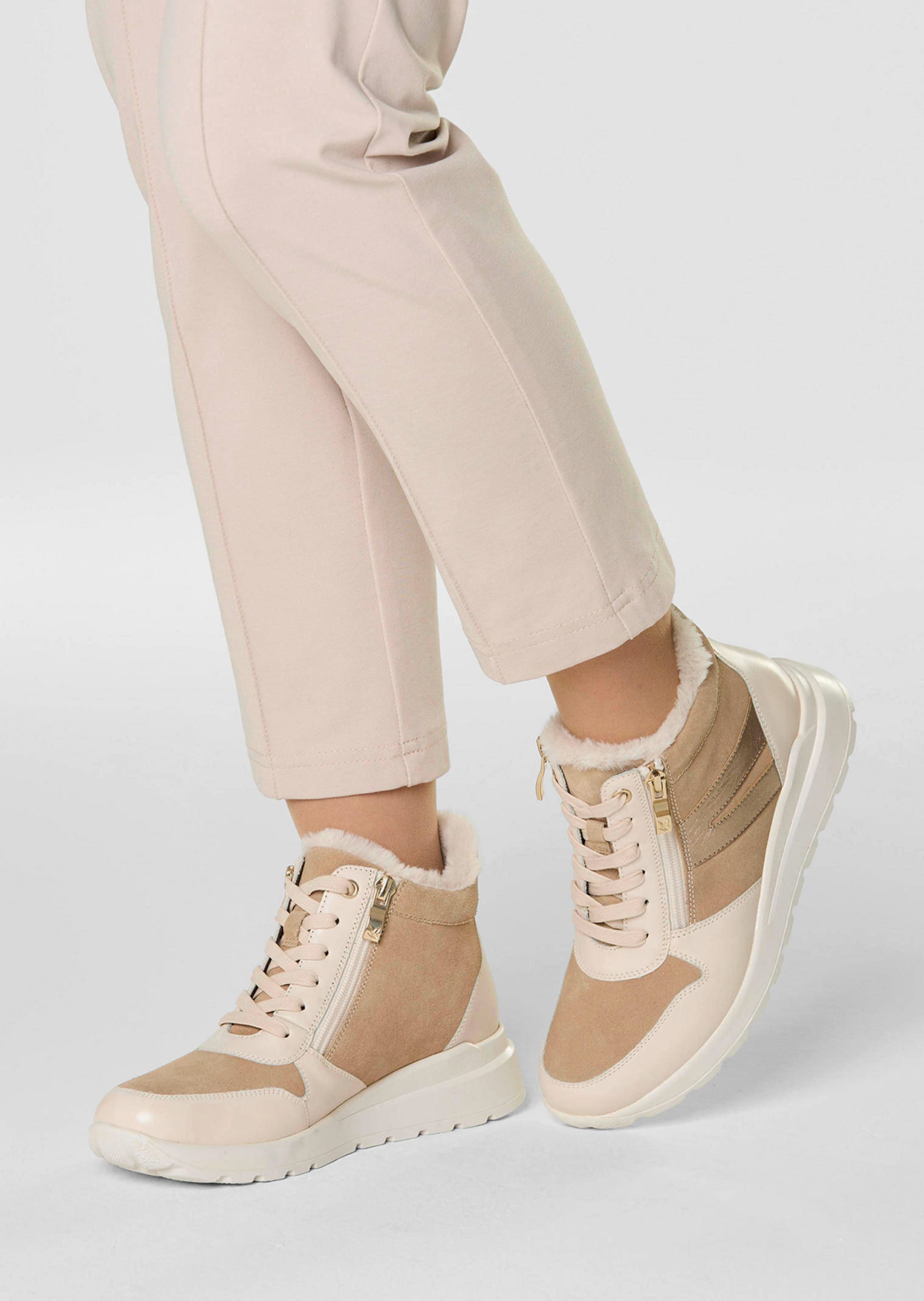 Bottines CAPRICE avec détails métallisés. Mix de matières en cuir et textile. Faciles à enfiler grâce deux zips et au laçage. Doublure chaude, première en textile et voûte plantaire amovible. Semelle extérieure en synthétique.