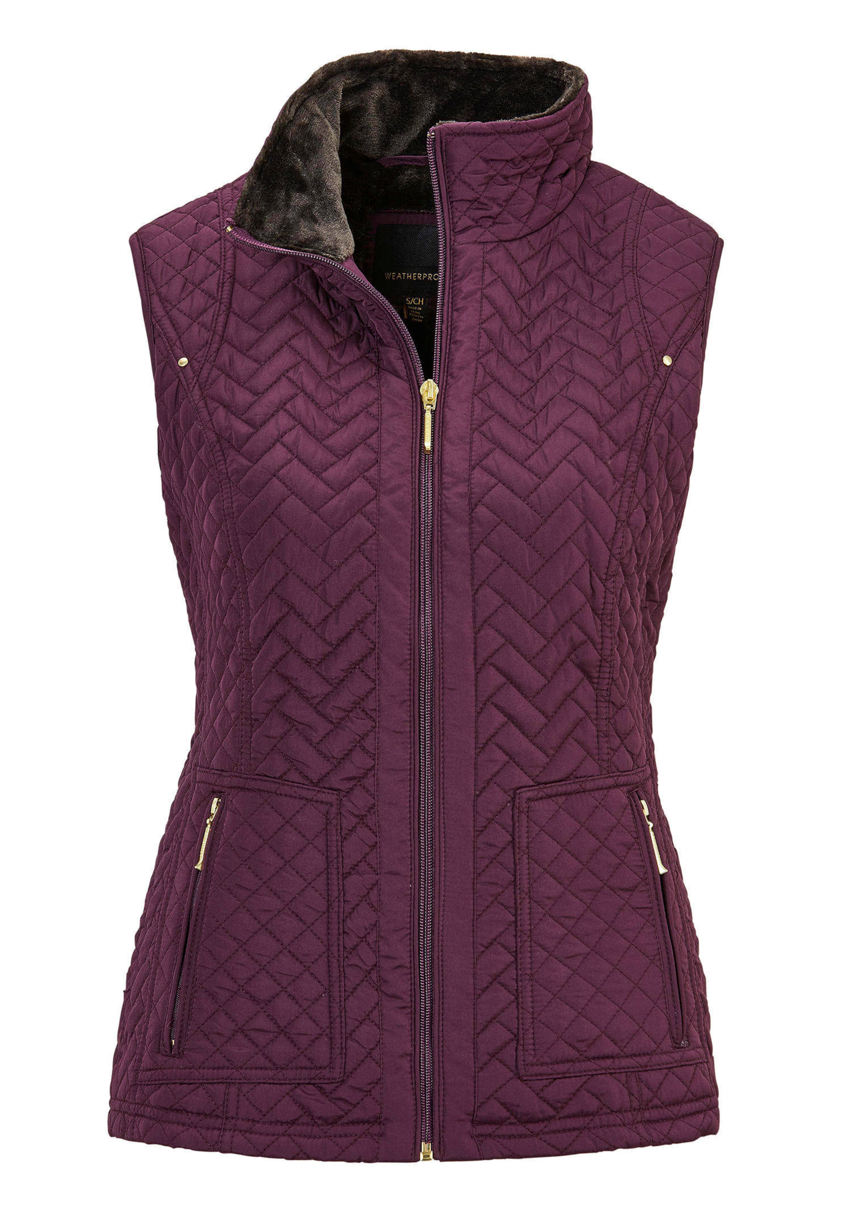 Gilet matelassé noble et décontracté, agrémenté d'un motif surpiqué séduisant composé de zigzags et de losanges. Les coutures princesse, flatteuses, contribuent à amincir visuellement la silhouette. Les poches zippées, à la fois pratiques et élégantes, gardent les mains bien au chaud et offrent suffisamment de place pour les petites choses inévitables du quotidien. Avec col montant et fermeture zippée. Son atout : sa doublure en peluche douce, bien chaude. Taille petit : veuillez commander une taille au-dessus de votre taille habituelle.