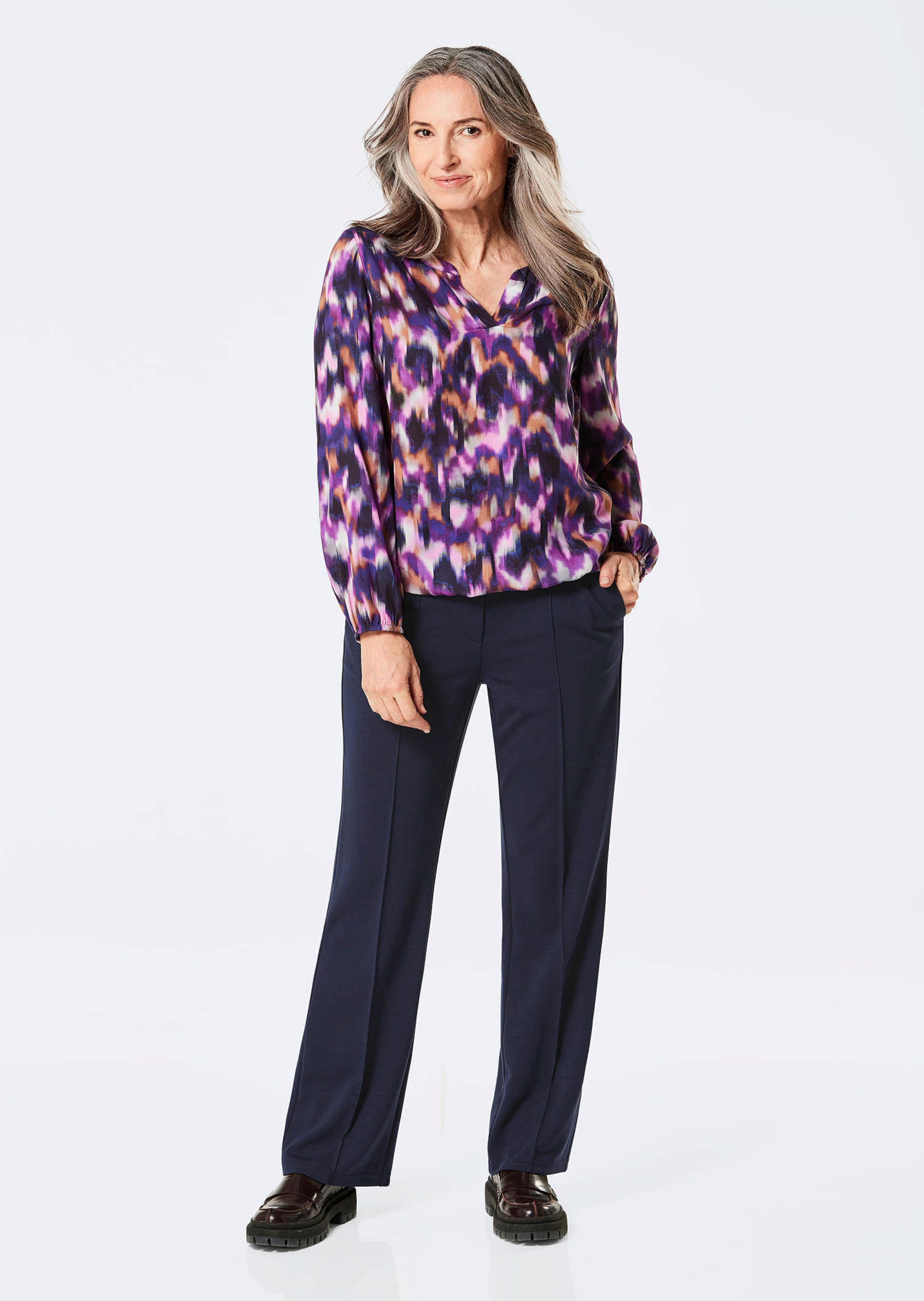 Pantalon en jersey VERA à taille élastique lisse, très tendance. Jambes amples avec passepoil soigné à effet visuel allongeant, devant. Les coutures à effet galbant au dos garantissent une coupe parfaitement seyante. Look décontracté, confectionné en jersey doux et fluide avec teneur en viscose et Elasthanne. Fausse patte zippée, devant, poches latérales et taille lisse élastique. Largeur au bas env. 52 cm. Coupe ample.