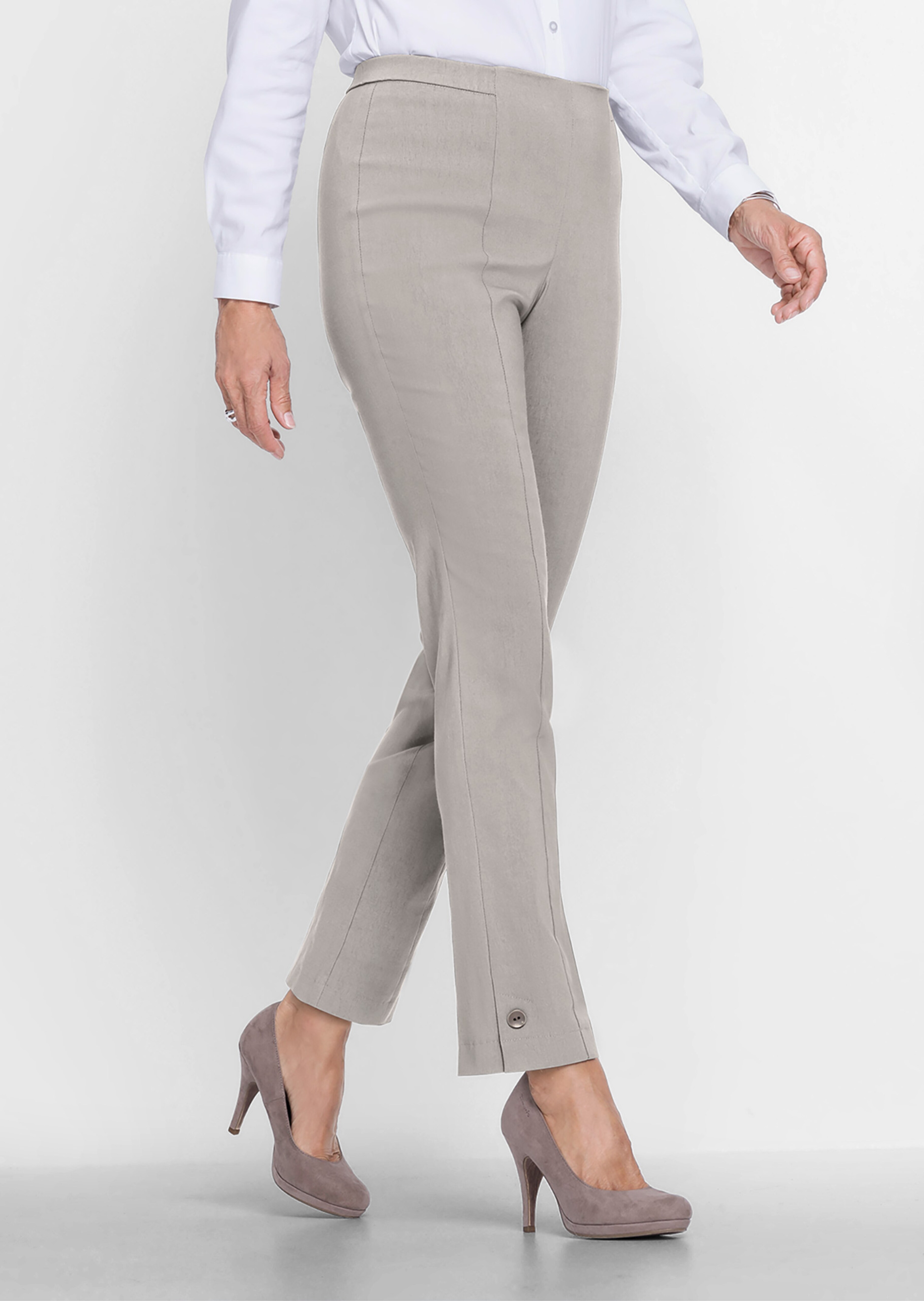 Pantalon super stretch MARTHA avec taille élastique, décliné dans des coloris faciles à combiner. Modèle agrémenté devant et au dos de découpes à effet visuel amincissant qui sculptent une silhouette de rêve. Matière confortable, facile à l'entretien, parfaitement adaptée aux voyages… Lavez, séchez et enfilez, le tour est joué ! Taille élastique variable avec partie lisse devant pour que rien ne transparaisse sous un haut. Pantalon long : bas des jambes env. 36 cm ; pantalon 7/8 et pantalon à longueur cheville, pièce, env. 38 cm ; corsaire env. 42 cm. Pantalon long avec bas des jambes resserré. Pantalon 7/8, corsaire et pantalon en longueur cheville : jambes droites.