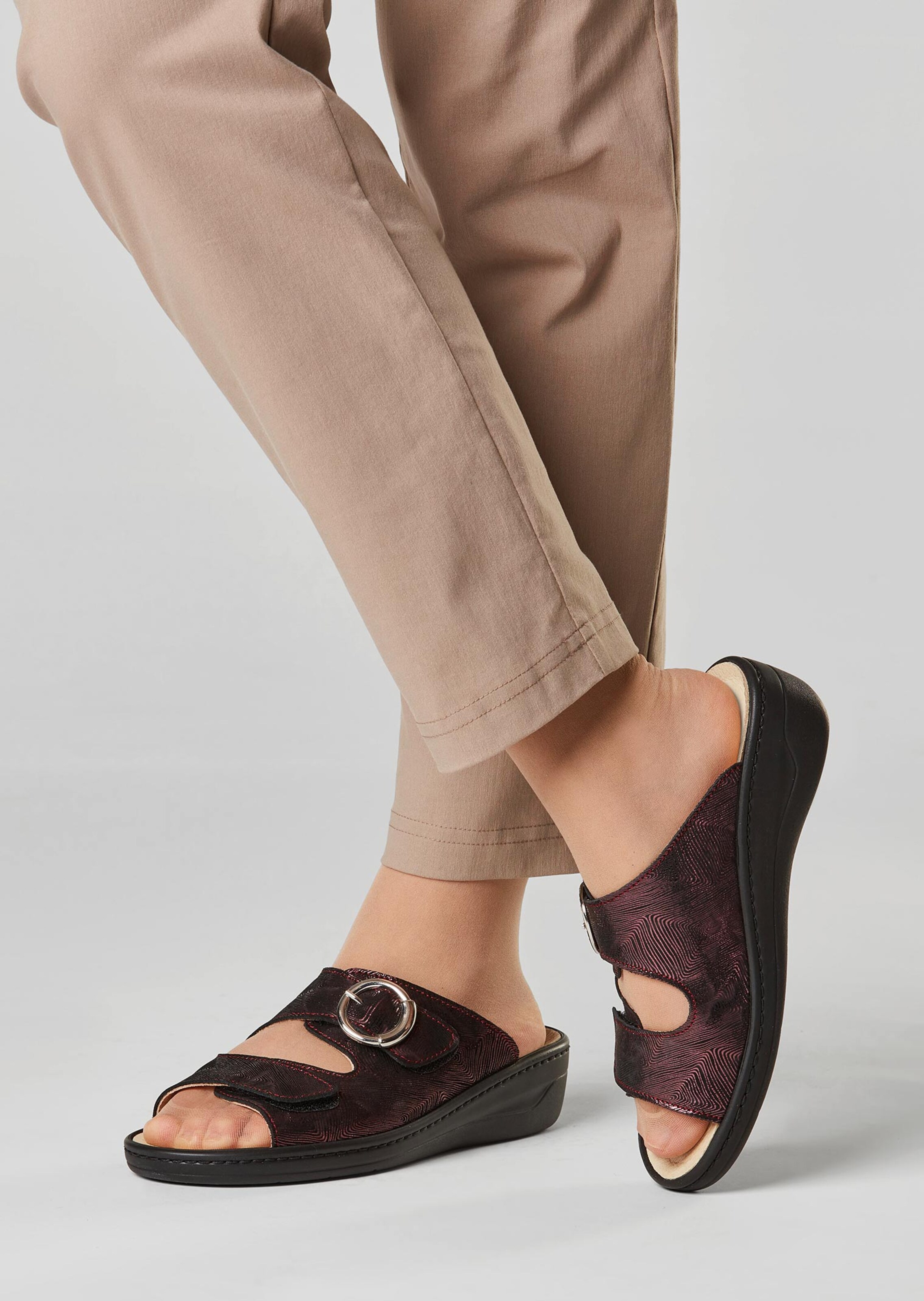 Pantoufles FRANKEN-SCHUHE en cuir souple, très confortables grâce aux fermetures scratch. La voûte plantaire amovible peut être remplacée par des semelles orthopédiques. Finition intérieure cuir, voûte plantaire en liège véritable et semelle PU.