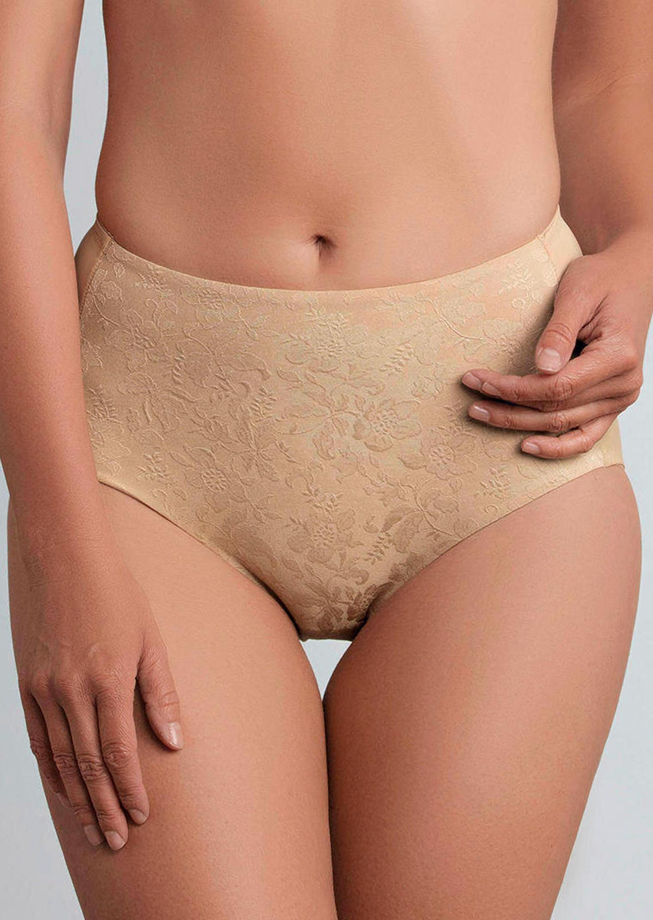 Slip gainant minimiseur à effet « ventre plat » signé MISS PERFECT. Partie avant avec plastron gainant qui camoufle les petites imperfections à merveille ! La taille assez haute et les coutures à effet galbant, sculptent la silhouette à la perfection. Slip parfaitement seyant avec finition élastique à la découpe des jambes. Devant, avec dentelle jacquard élégante.