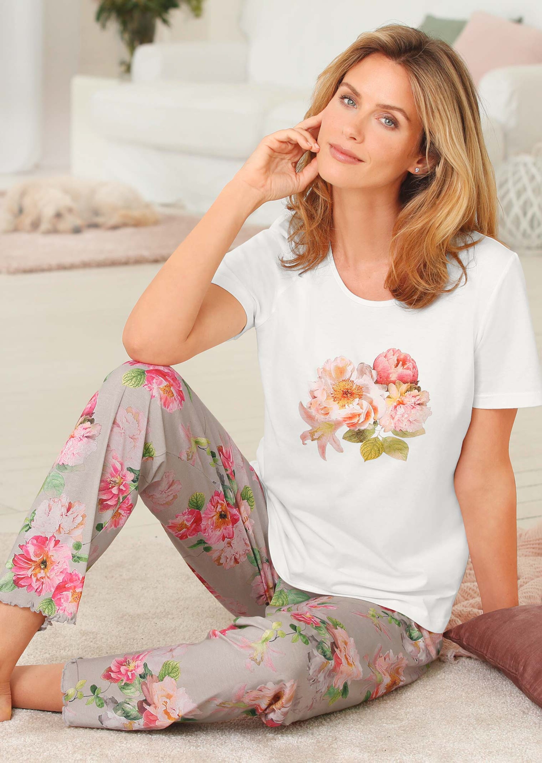 Pyjama ASCAFA en single jersey qui fait l'effet d'une caresse sur la peau. Le mélange haut de gamme de coton et Modal est un bonheur à porter. Un imprimé artistique anime le haut et met particulièrement bien en valeur le pantalon. T-shirt avec encolure arrondie et manches courtes. Pantalon à taille élastique de coupe décontractée, avec charmants petits bords ondulés au bas des jambes. Longueur haut/pantalon env. 72/1 cm en 46/48, env. 68/96 cm en 23/24.