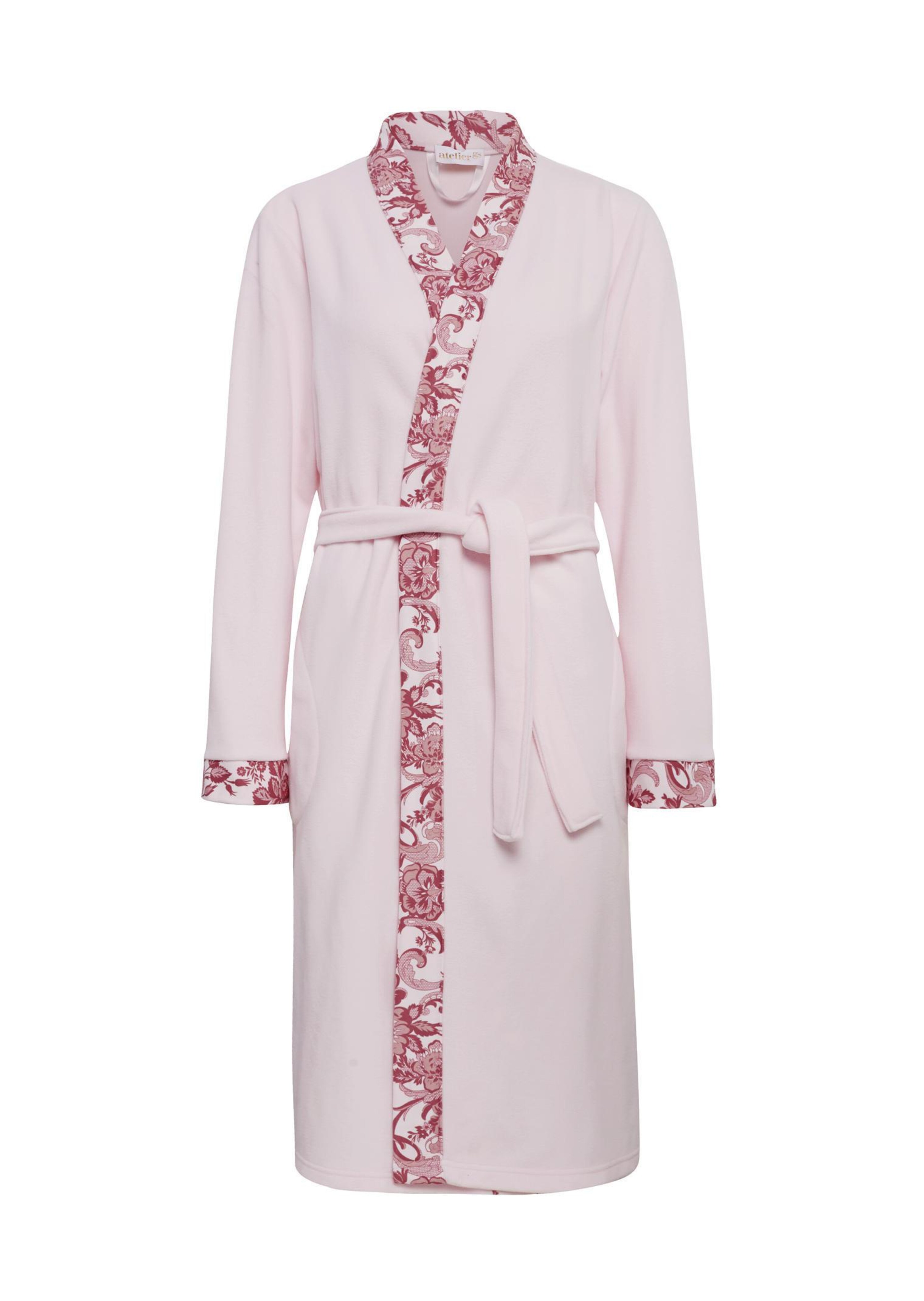 Robe de chambre élégante avec coupe croisée et ceinture à nouer. Sa douce matière en polaire n'est pas seulement chaude et légère, mais également très féminine avec ses roses imprimées sur les bords. Ce détail, complété par des poches piquées, témoigne d'une finition de haut niveau. Longueur env. 102 cm en 46, env. 96 cm en 23.