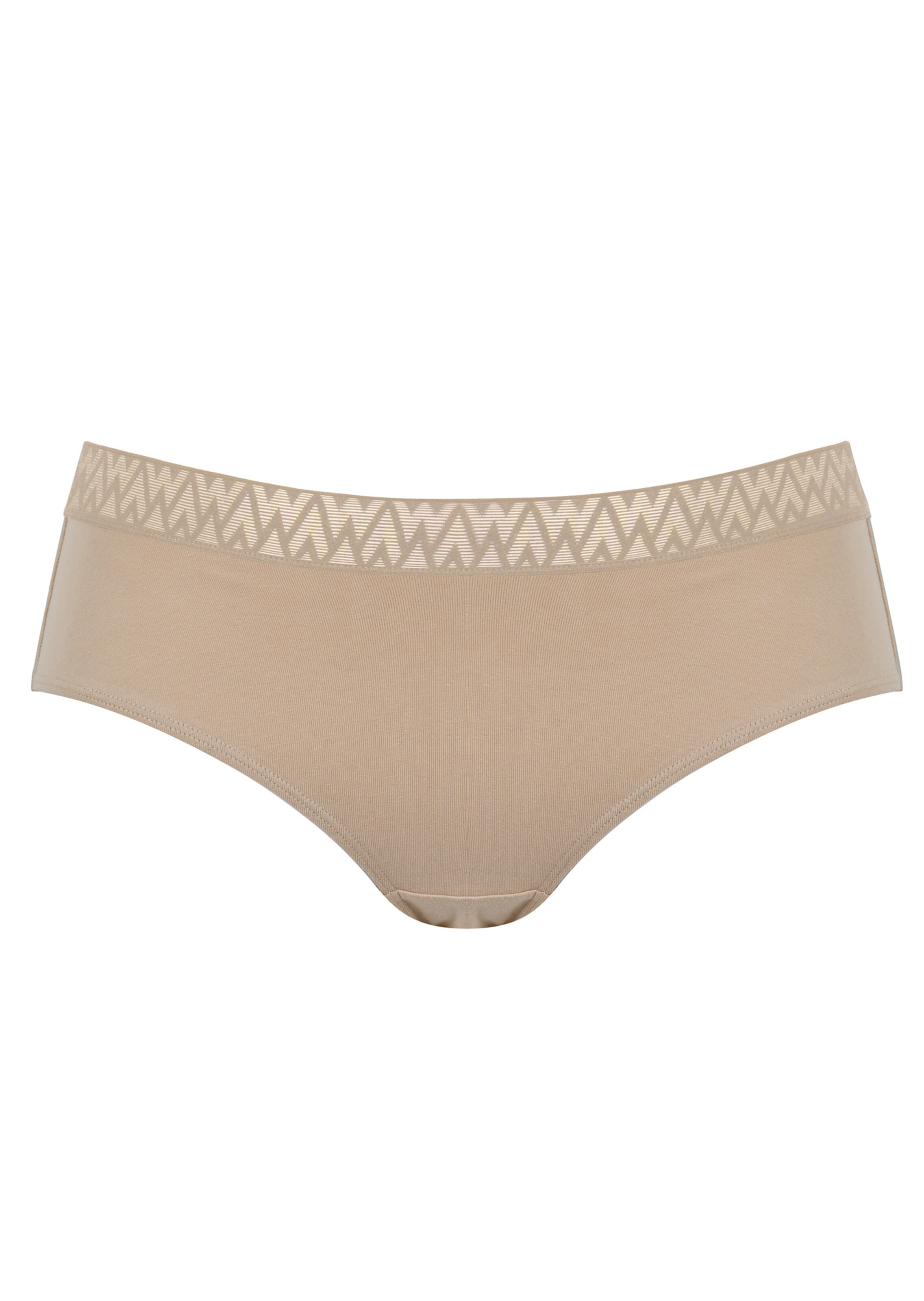 Slip confortable à la coupe parfaite. Modèle doux, très agréable à porter, confectionné dans une belle matière avec teneur en coton. La taille est agrémentée d’une large bande décorative douce et élastique qui séduit le regard d’emblée. Matière de bonne tenue avec teneur en élasthanne. Fond doublé.