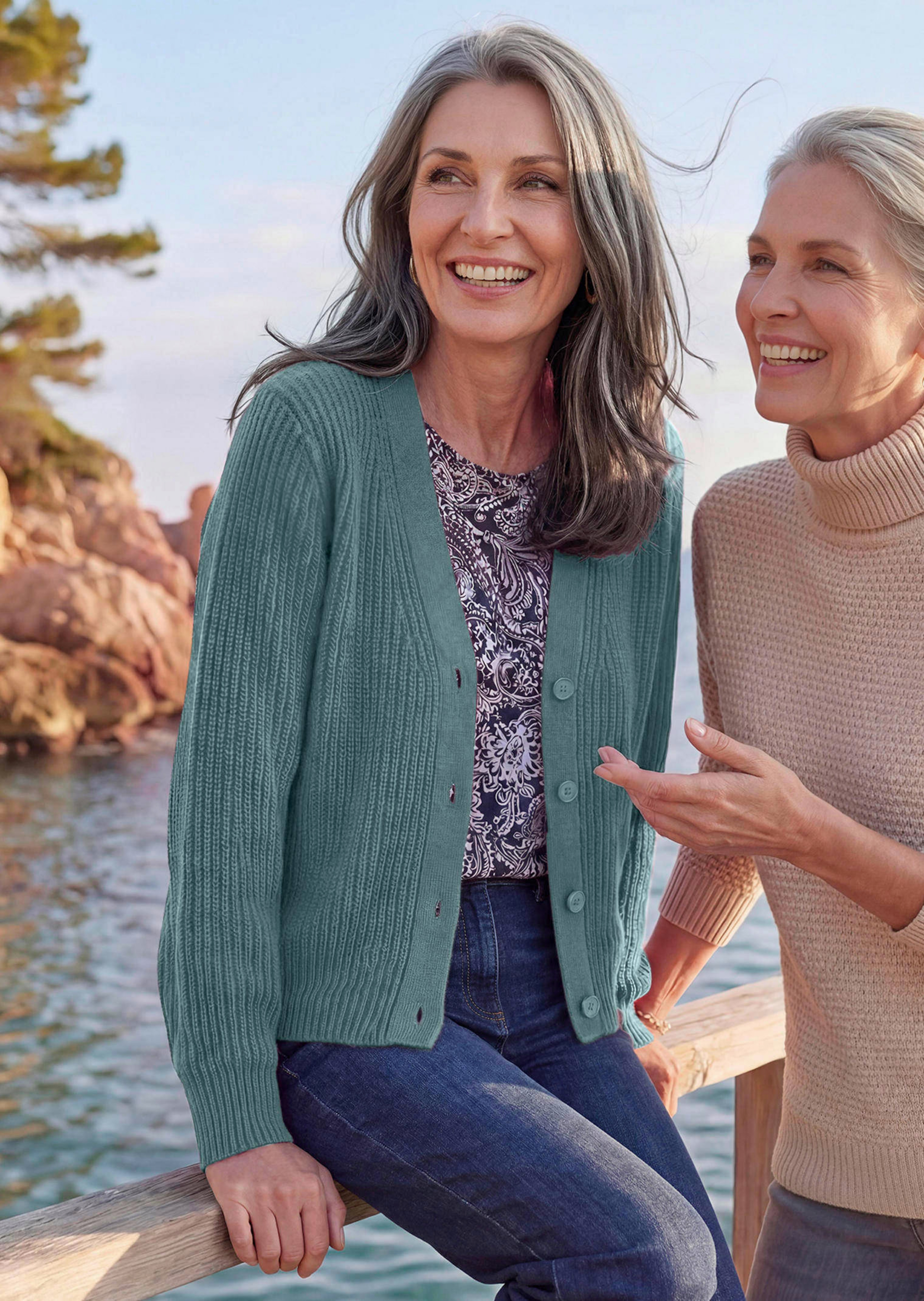 Une structure côtelée moderne anime ce cardigan dont le tricot de laine mélangée, très agréable à porter, est soigneusement diminué. Les petits bords en côtes lui assurent un tombé impeccable tout en profitant à la silhouette. Ruban décoratif sport à l'encolure en V, grands boutons ton sur ton. Longueur env. 65 cm en 46, env. 61 cm en 23.
