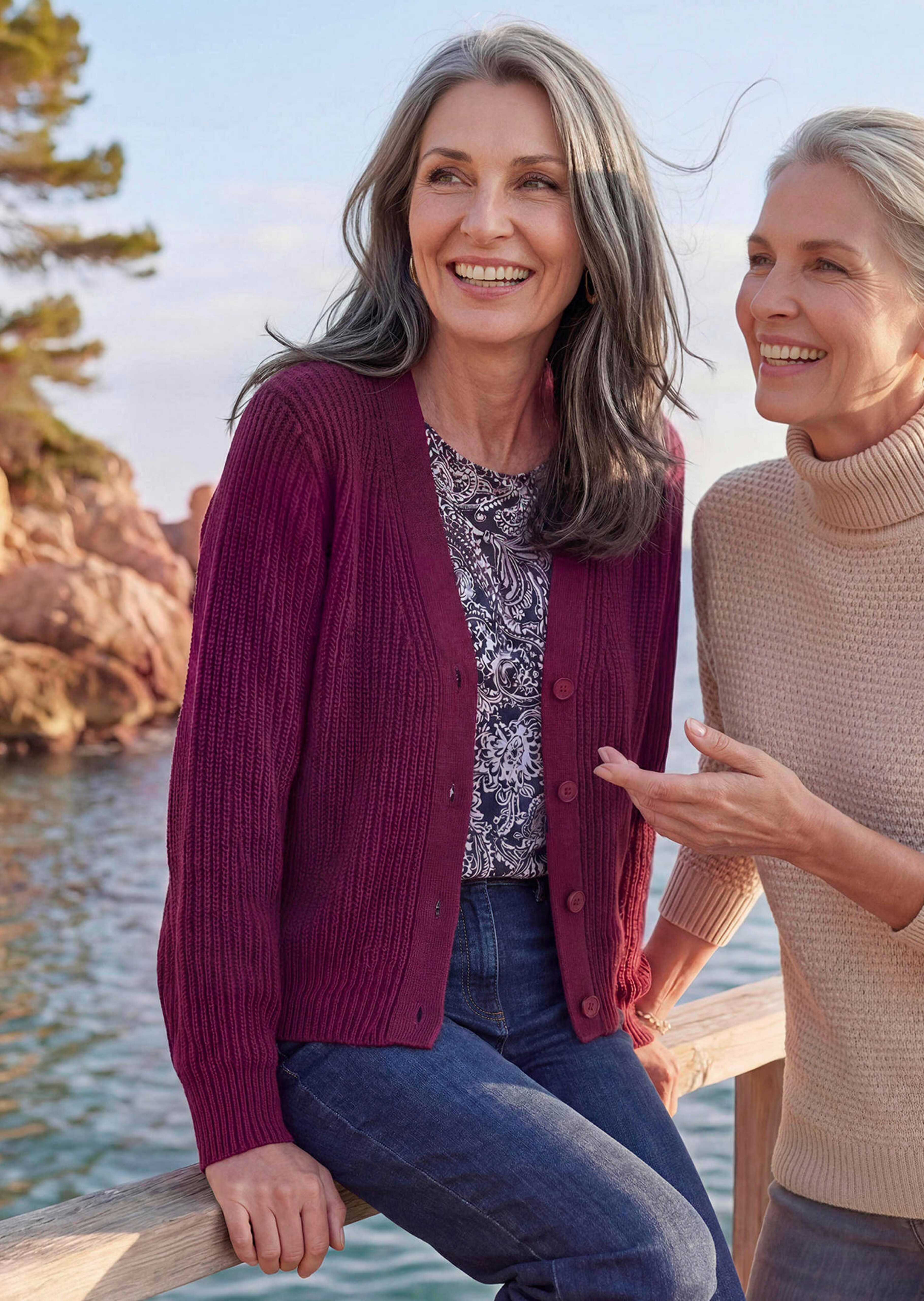 Une structure côtelée moderne anime ce cardigan dont le tricot de laine mélangée, très agréable à porter, est soigneusement diminué. Les petits bords en côtes lui assurent un tombé impeccable tout en profitant à la silhouette. Ruban décoratif sport à l'encolure en V, grands boutons ton sur ton. Longueur env. 65 cm en 46, env. 61 cm en 23.