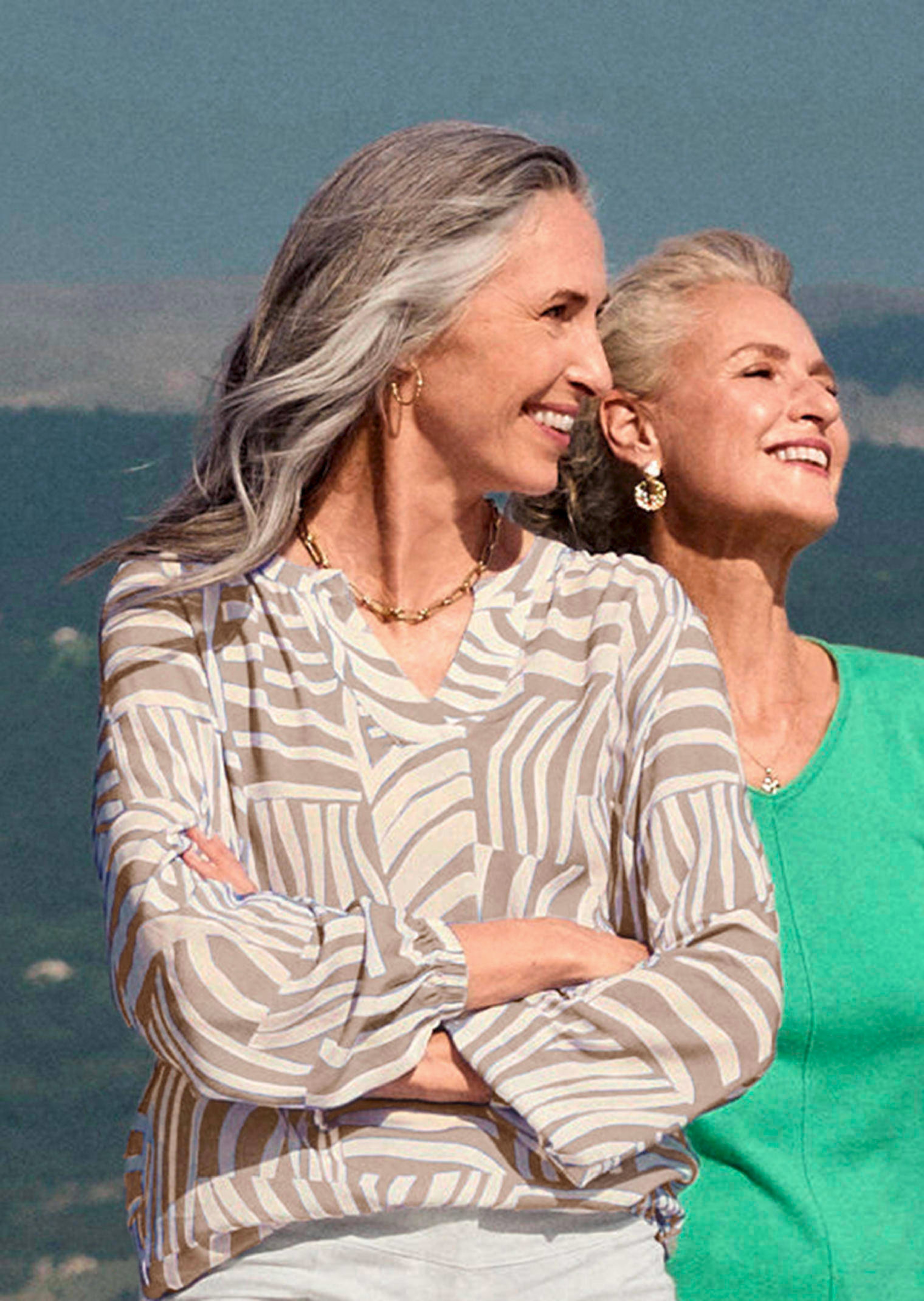 Chemisier dynamique, facile à combiner, avec imprimé patchwork. L'encolure arrondie avec généreuse finition gansée sublime le décolleté à merveille. Les manches longues se retroussent aisément grâce aux finitions extensibles. Les épaules et le dos légèrement froncés garantissent plus d'aisance et flattent la silhouette. En viscose légère, à effet climatisant. Longueur env. 66 cm en 46, env. 62 cm en 23.