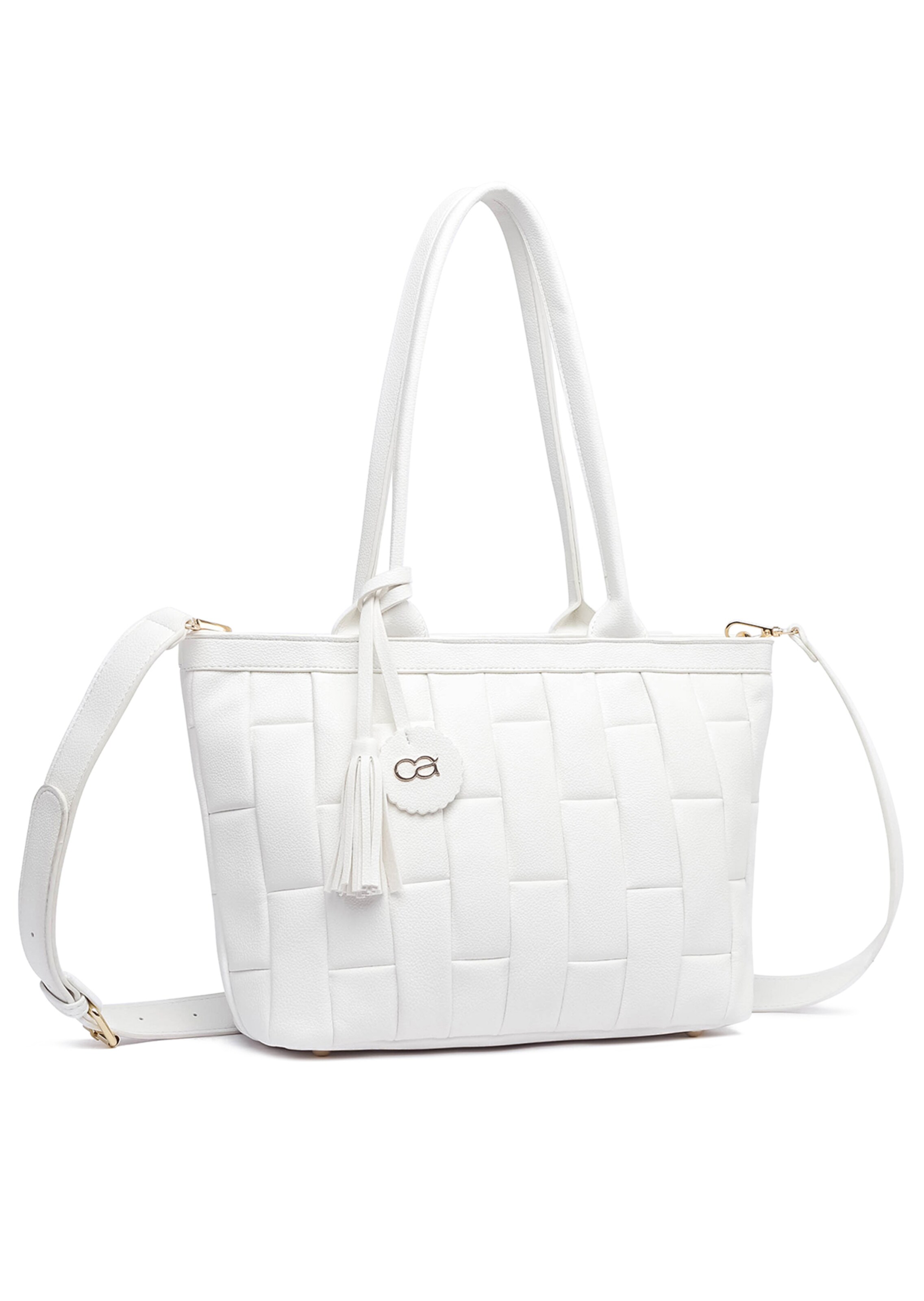 Sac shopper aspect cuir souple avec un aspect tressé sur le devant. Spacieux, le sac se ferme en toute sécurité avec une fermeture zippée. Porté à l'épaule ou en bandoulière avec sa longue sangle supplémentaire, il s'adapte à vos préférences. La poche extérieure zippée au dos est pratique pour le téléphone portable ou les clés. Sublimant le tout, un pompon détachable sur l'anse ajoute une note tendance. L'intérieur se pare d'une doublure contrastée et d'une poche de sécurité. Un subtil mélange de fonctionnalité et de style.