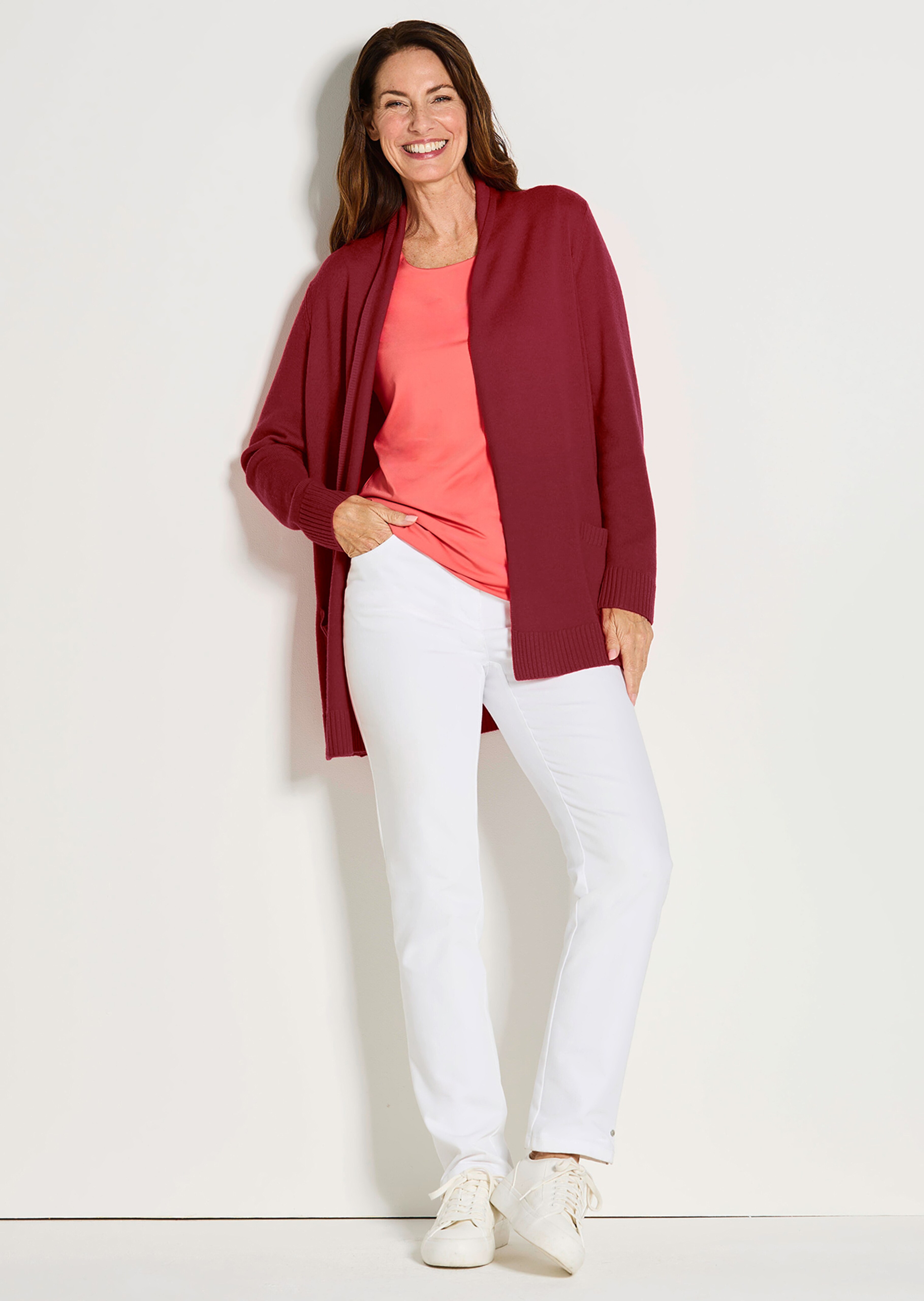 Ce cardigan long et décontracté a tout pour figurer parmi vos tenues préférées de tous les jours. Très beau, il est vite enfilé et transforme une tenue en un tournemain. La douce et fine laine mérinos est très agréable à porter car elle a la faculté d'équilibrer la température. Coupe avantageuse pour la silhouette, col châle à effet svelte, poches plaquées. Longueur env. 75 cm en 46, env. 71 cm en 23.