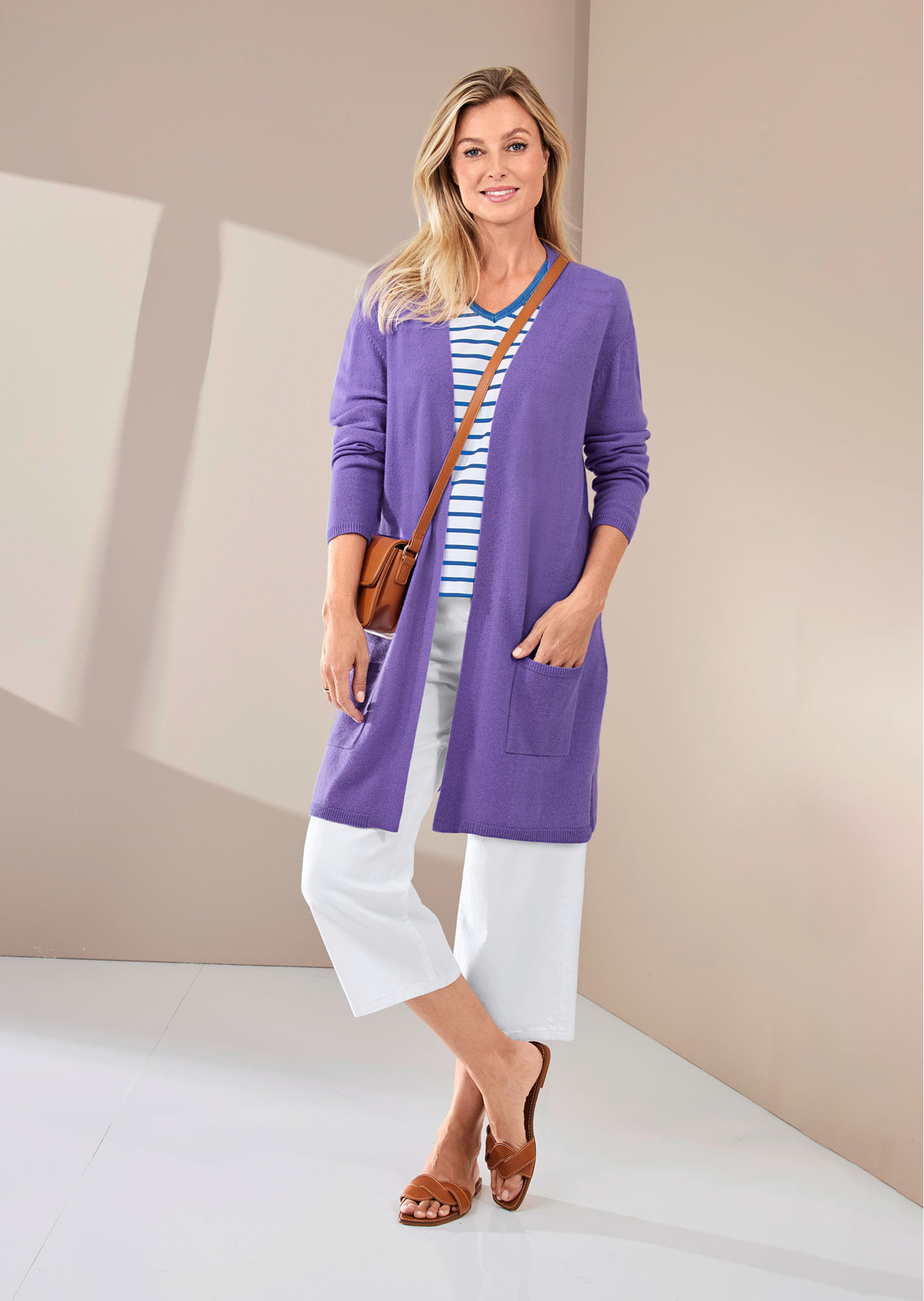 Ce cardigan long en cachemire est très agréable à porter, d'une part grâce à l'infinie douceur de la matière et d'autre part grâce à la coupe, avec sur les côtés des fentes qui vous permettent de profiter d'une totale liberté de mouvement. Épaules légèrement tombantes, poches plaquées, joli col. Un modèle qui a toutes les chances de figurer parmi vos tenues préférées. Longueur env. 88 cm en 46, env. 84 cm en 23.