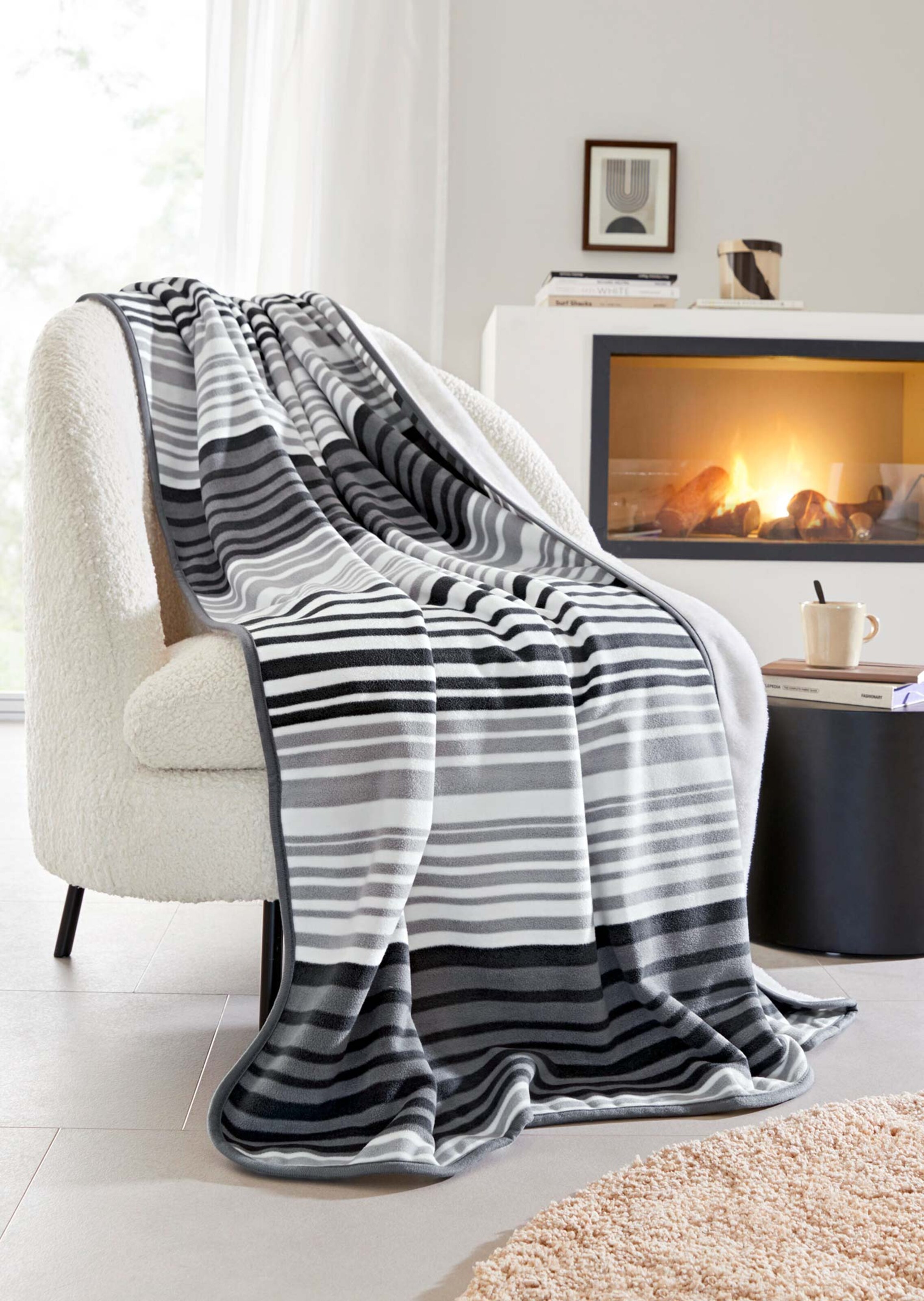 Douceur sur la peau, chaleur, exclusivité, les couvertures réversibles PASHMINA FEELING de GÖZZE offrent tout cela. Incroyablement souples, elles diffusent une chaleur bienfaisante. C'est un véritable plaisir que de s'y lover pour profiter d'intenses moment de bien-être chez soi. Leur finition bicolore apporte une touche moderne à votre intérieur. Dessus de couleur, dessous doux et moelleux. Disponible en deux versions : coloris uni ou rayures mode. Poids env. 460 g/m².
