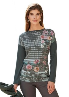 À l'avant, ce T-shirt imprimé se compose de satin doux et fluide tandis que le dos et les manches sont en jersey souple. Des pinces à la poitrine assurent un tombé impeccable à la coupe décontractée. Épaules kimono, ravissante encolure bateau passepoilée. Longueur env. 66 cm en 46, env. 62 cm en 23.