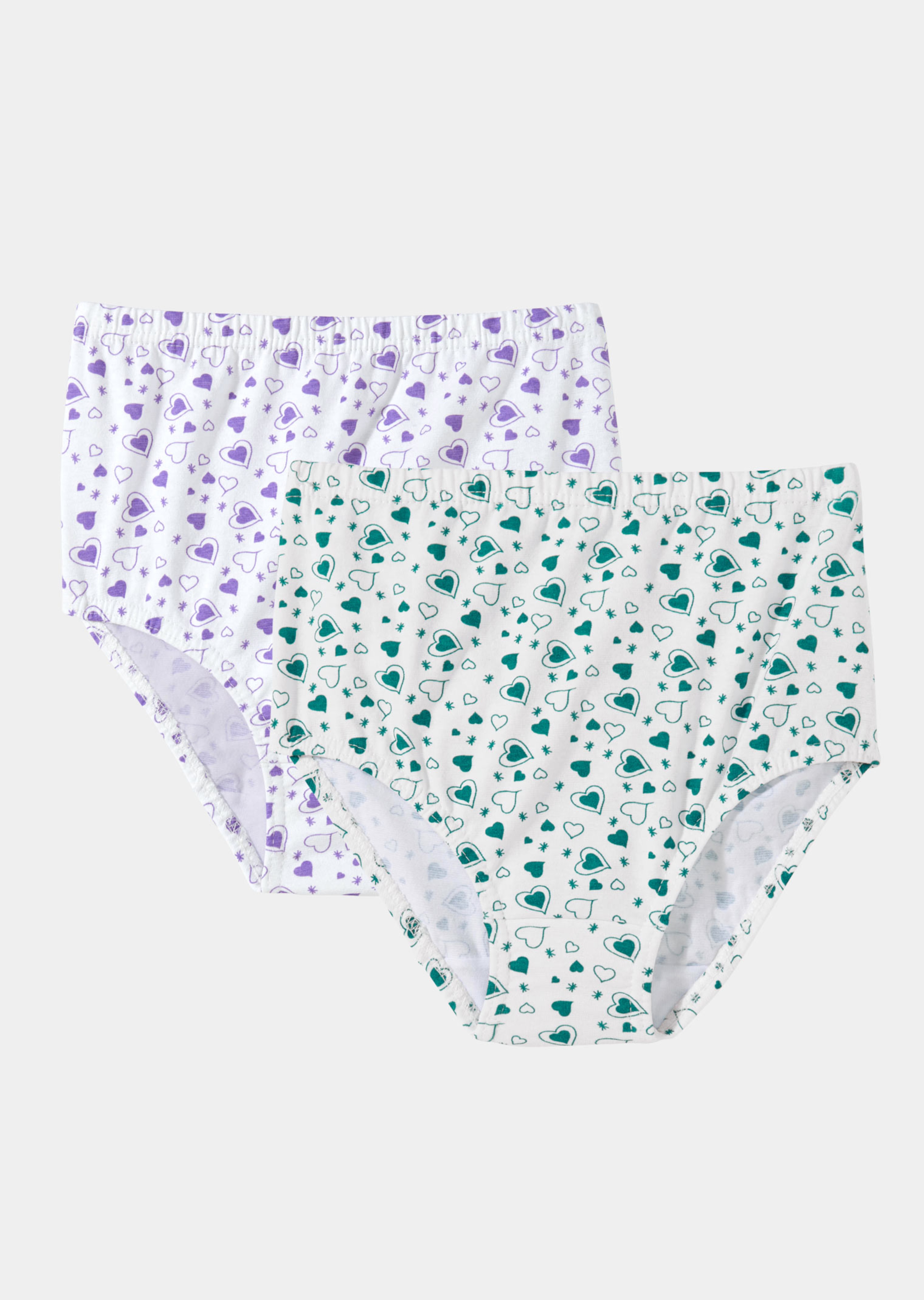 Culotte en lot de 7 avec motif de cœurs séduisant. Lot composé de 3 slips blanc-pétrole, de 3 slips blanc-violet et d’1 slip blanc. Lot hebdomadaire chic et pratique. En jersey ultradoux avec teneur en coton - indéformable. Coupe confortable avec larges côtés et échancrure modérée aux jambes. Avec fond en coton, double épaisseur, pour une sérénité maximale.