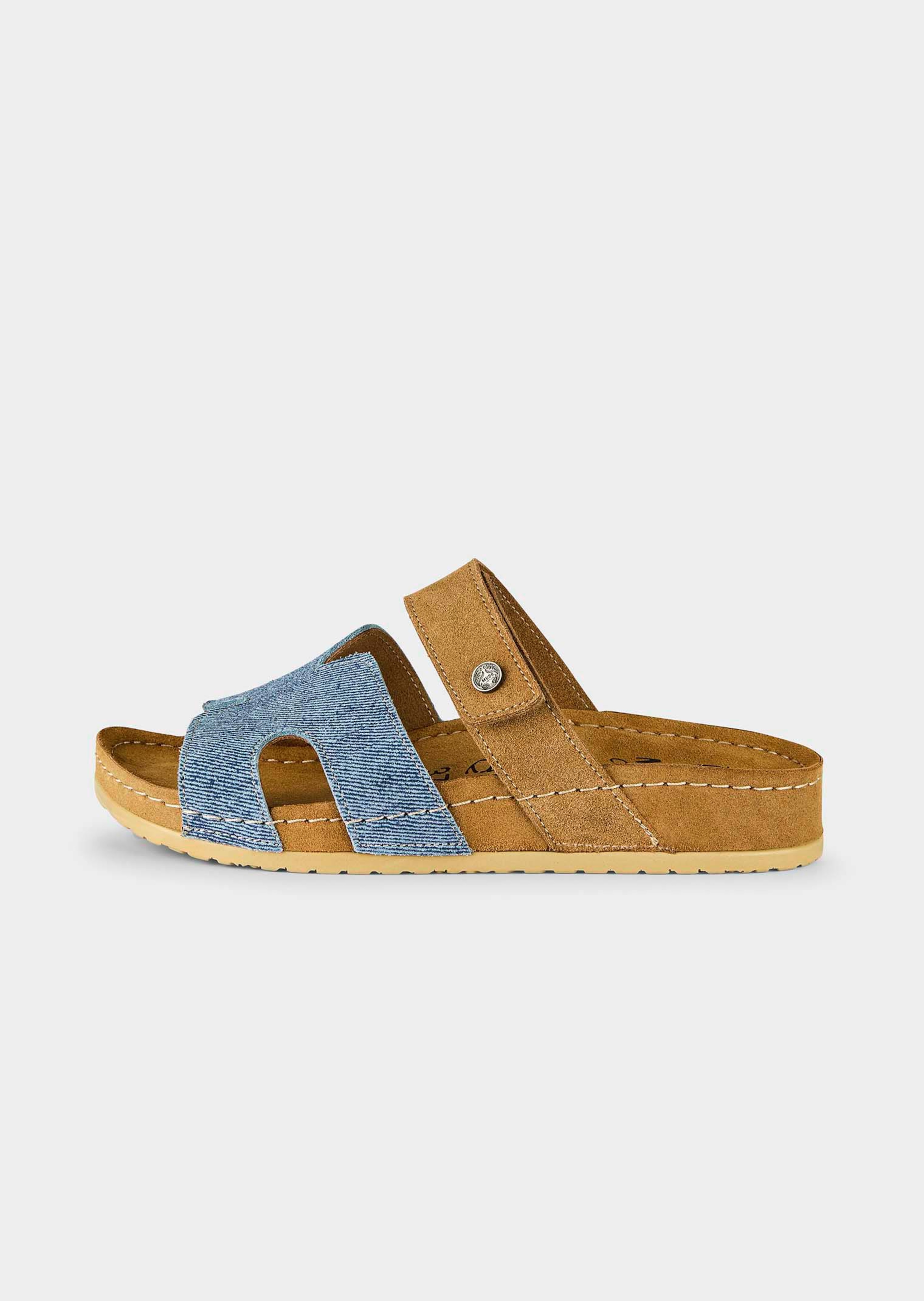 Mules MUBB entièrement réalisées en cuir. La voûte plantaire à mémoire de forme adopte la forme du pied à la perfection et garantit ainsi bien-être et stabilité. Ampleur réglable par scratch. Semelle extérieure antidérapante en PU.