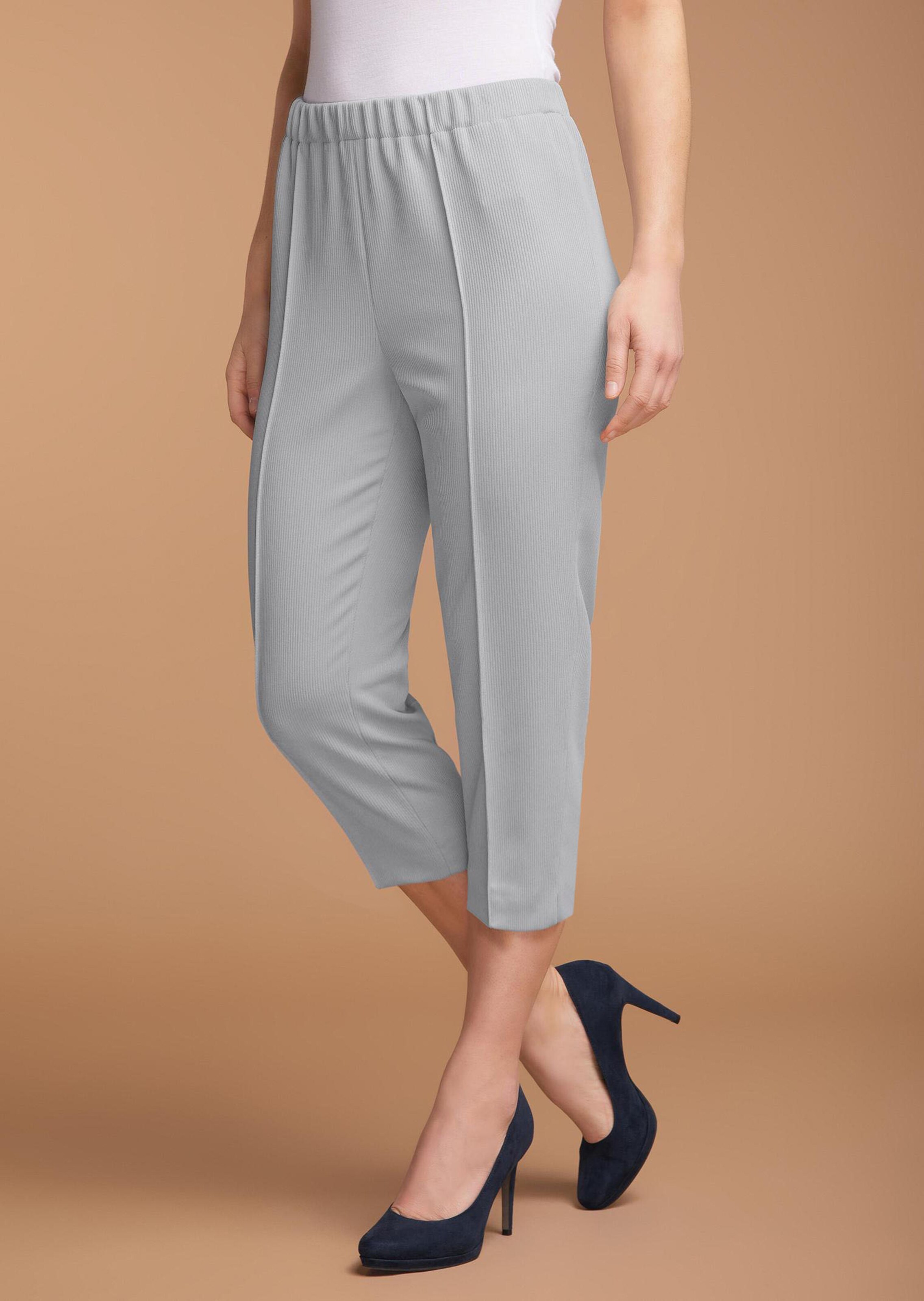 Si vous recherchez le confort maximum ou si vous voyagez, ce pantalon à côtes 7/8 CARLA est fait pour vous. Même après un long trajet en voiture, il conserve son aspect impeccable. Le tissu de qualité qui le compose est agréablement souple, quasiment infroissable et indéformable. Très facile d'entretien, il suffit de le laver et de le sécher, c'est tout. Confortable taille élastique, liserés piqués qui allongent visuellement. Largeur au bas env. 44 cm. Coupe droite.
