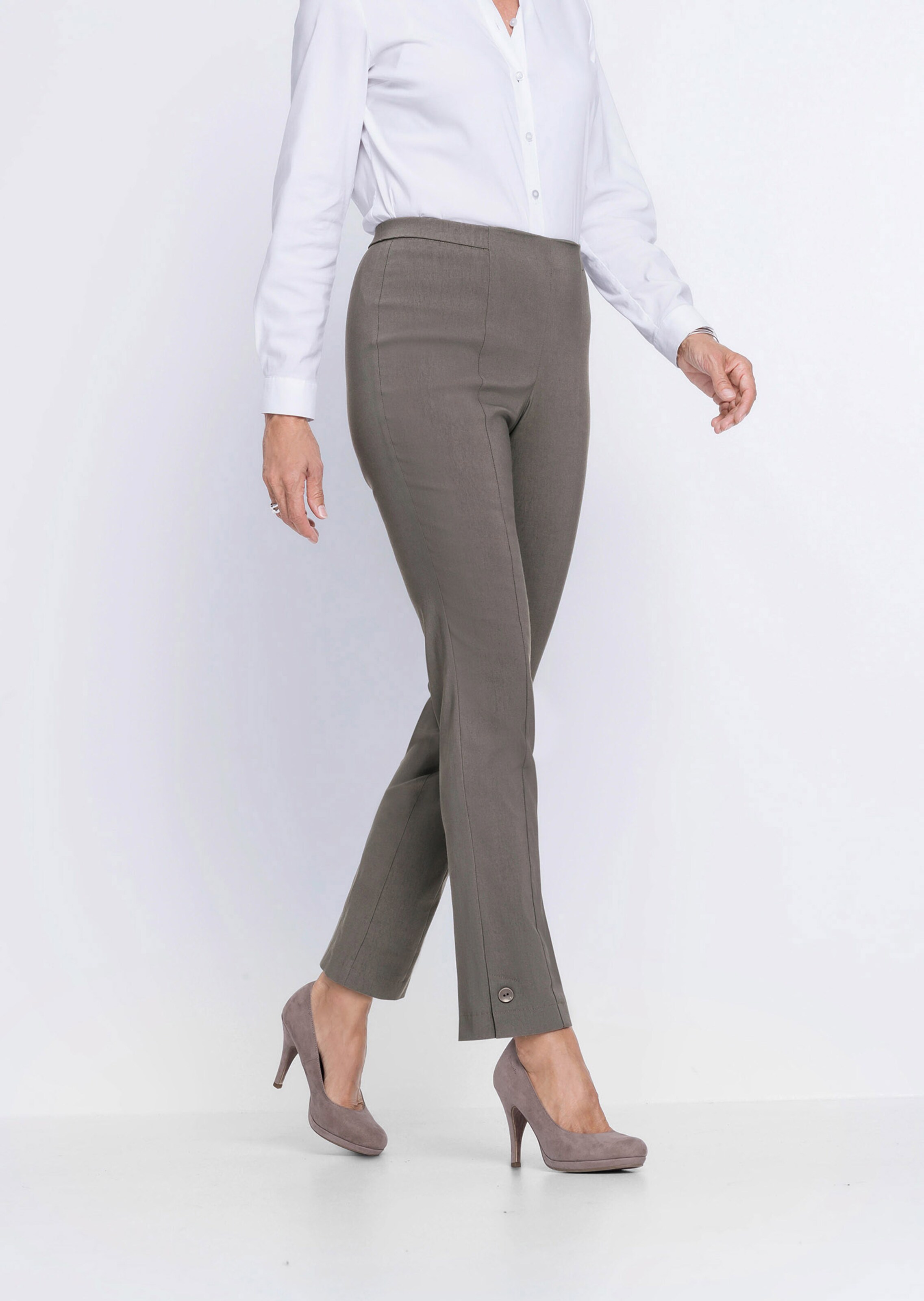 Pantalon super stretch MARTHA avec taille élastique, décliné dans des coloris faciles à combiner. Modèle agrémenté devant et au dos de découpes à effet visuel amincissant qui sculptent une silhouette de rêve. Matière confortable, facile à l'entretien, parfaitement adaptée aux voyages… Lavez, séchez et enfilez, le tour est joué ! Taille élastique variable avec partie lisse devant pour que rien ne transparaisse sous un haut. Pantalon long : bas des jambes env. 36 cm ; pantalon 7/8 et pantalon à longueur cheville, pièce, env. 38 cm ; corsaire env. 42 cm. Pantalon long avec bas des jambes resserré. Pantalon 7/8, corsaire et pantalon en longueur cheville : jambes droites.