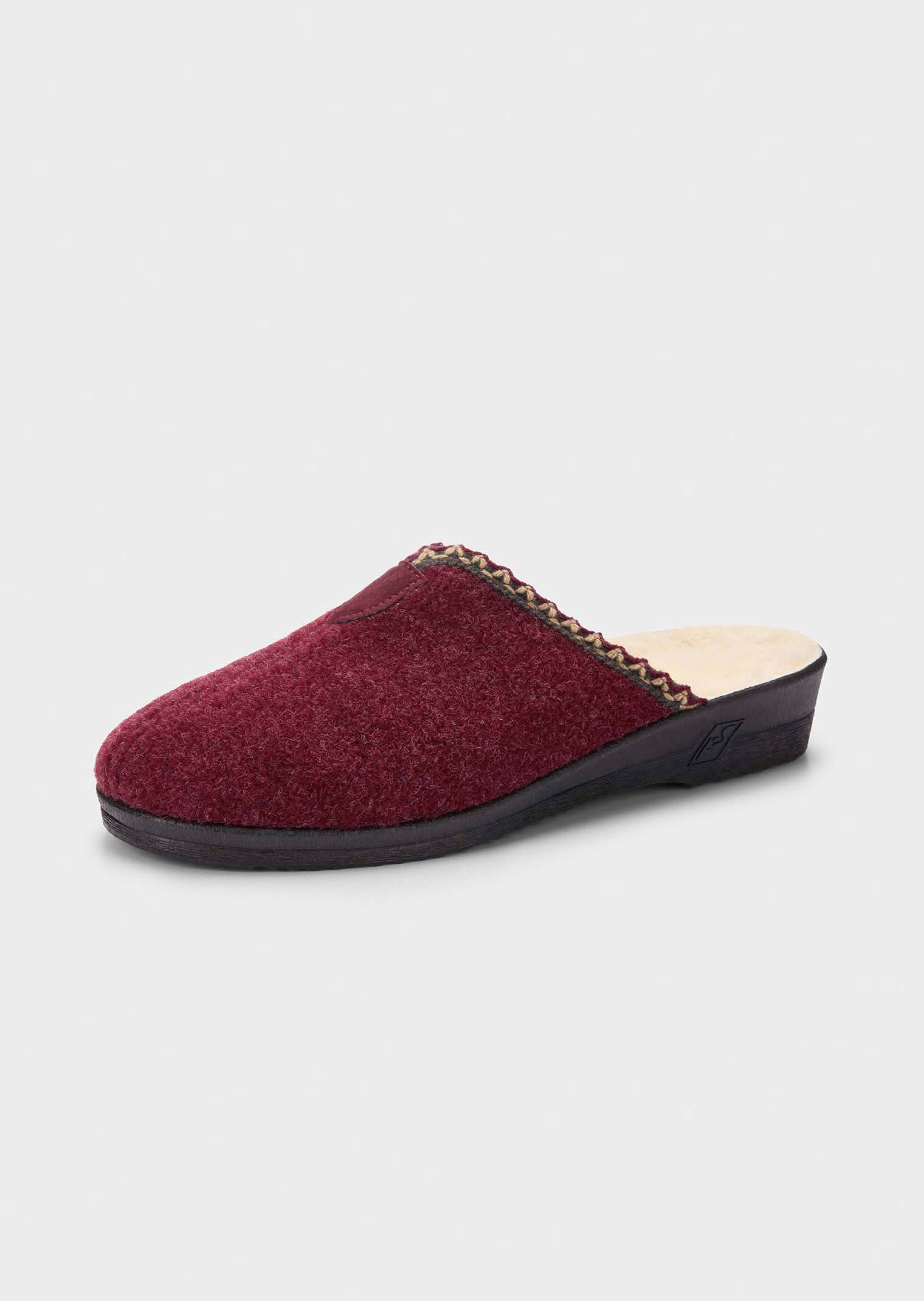 Pantoufles en largeur G réalisées en feutre doux et bien chaud. Look séduisant avec coutures décoratives, soignées. Finition intérieure en pure laine vierge garantissant des pieds chauds en toutes circonstances.