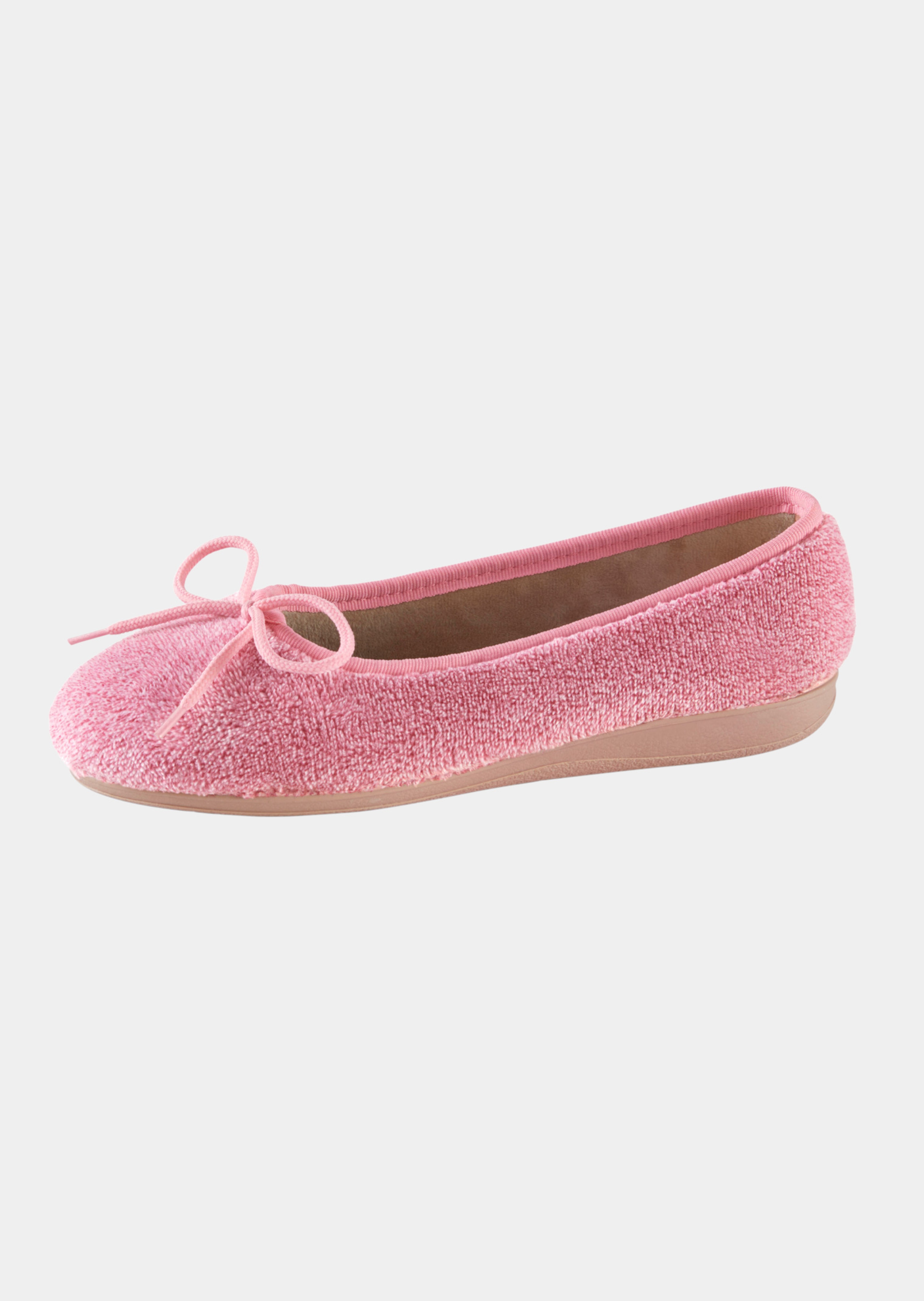 Pantoufles en largeur F : la forme typique, façon ballerine, crée une ligne élégante. Dessus moelleux très doux agrémenté d’un petit nœud décoratif. Avec semelle antidérapante en caoutchouc véritable pour une stabilité accrue.
