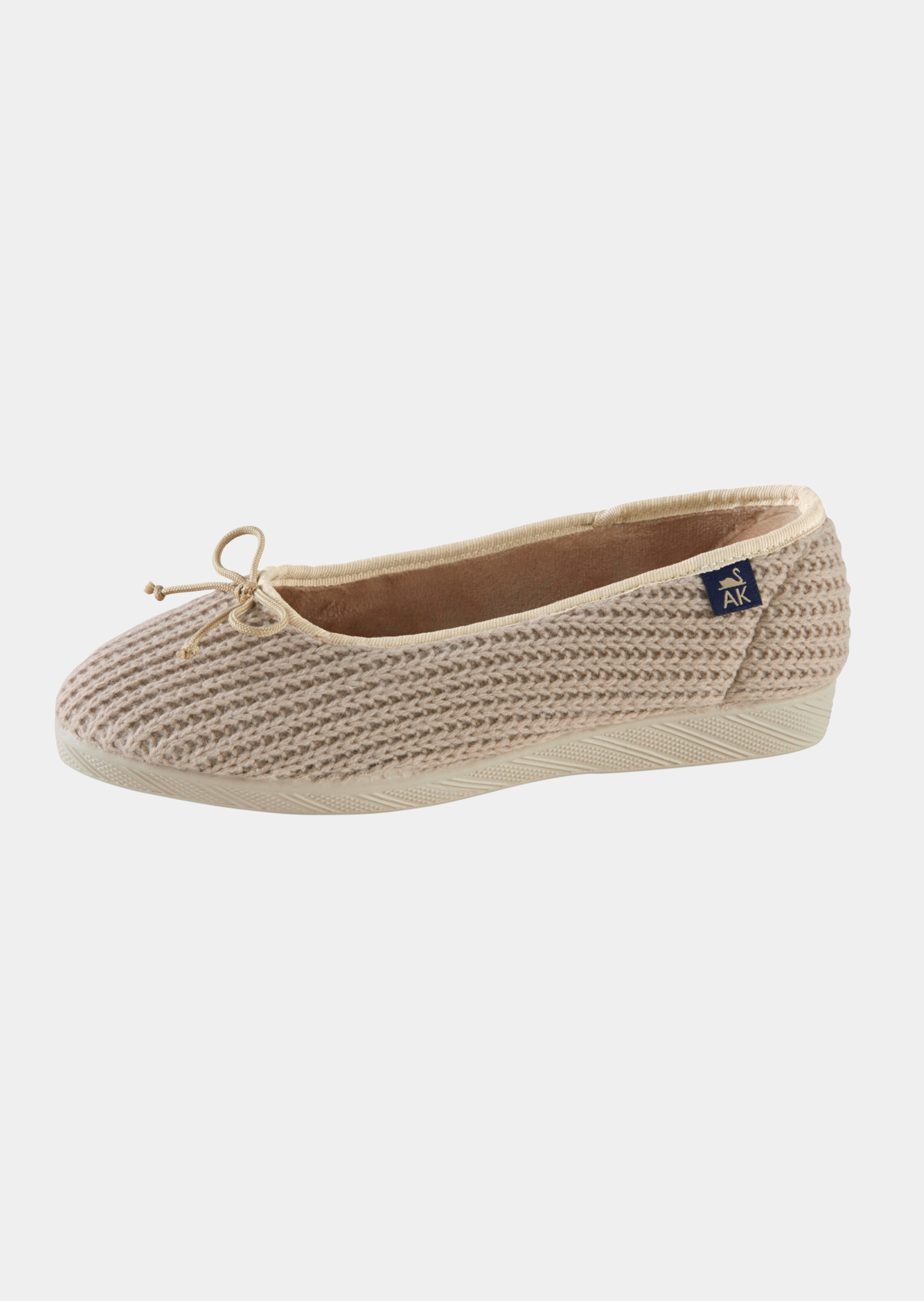 Pantoufles en largeur F : la forme typique, façon ballerine, crée une ligne élégante, parfaitement adaptée aux pieds fins. Doublure douce, très agréable, qui tient bien chaud. Détail séduisant : l’empeigne avec motif en tricot et petit nœud décoratif. Même à la maison, ne renoncez jamais à l'élégance, profitez de vos moments de détente en beauté !