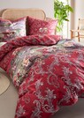 La parure de lit réversible en satin IRISETTE vous offre le choix entre deux faces aussi belles l'une que l'autre : ornements floraux et opulente bordure florale d'un côté, grands entrelacs de l'autre. La taie d'oreiller présente à l'avant une bordure florale et au dos un motif sobre. La mise en place est très aisée grâce à une fermeture par zip.