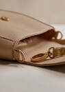 Parfaitement polyvalent, ce modèle se porte à la taille comme un sac banane grâce à sa ceinture ou à l'épaule grâce à sa sangle amovible. Le compartiment principal se ferme par un bouton-pression doré sur rabat et peut accueillir un téléphone mobile et un porte-monnaie. La ceinture est pourvue d'une boucle couleur or. Prévue pour les tailles 42 à 50, elle peut être percée de trous supplémentaires. Matière synthétique souple, grainée.