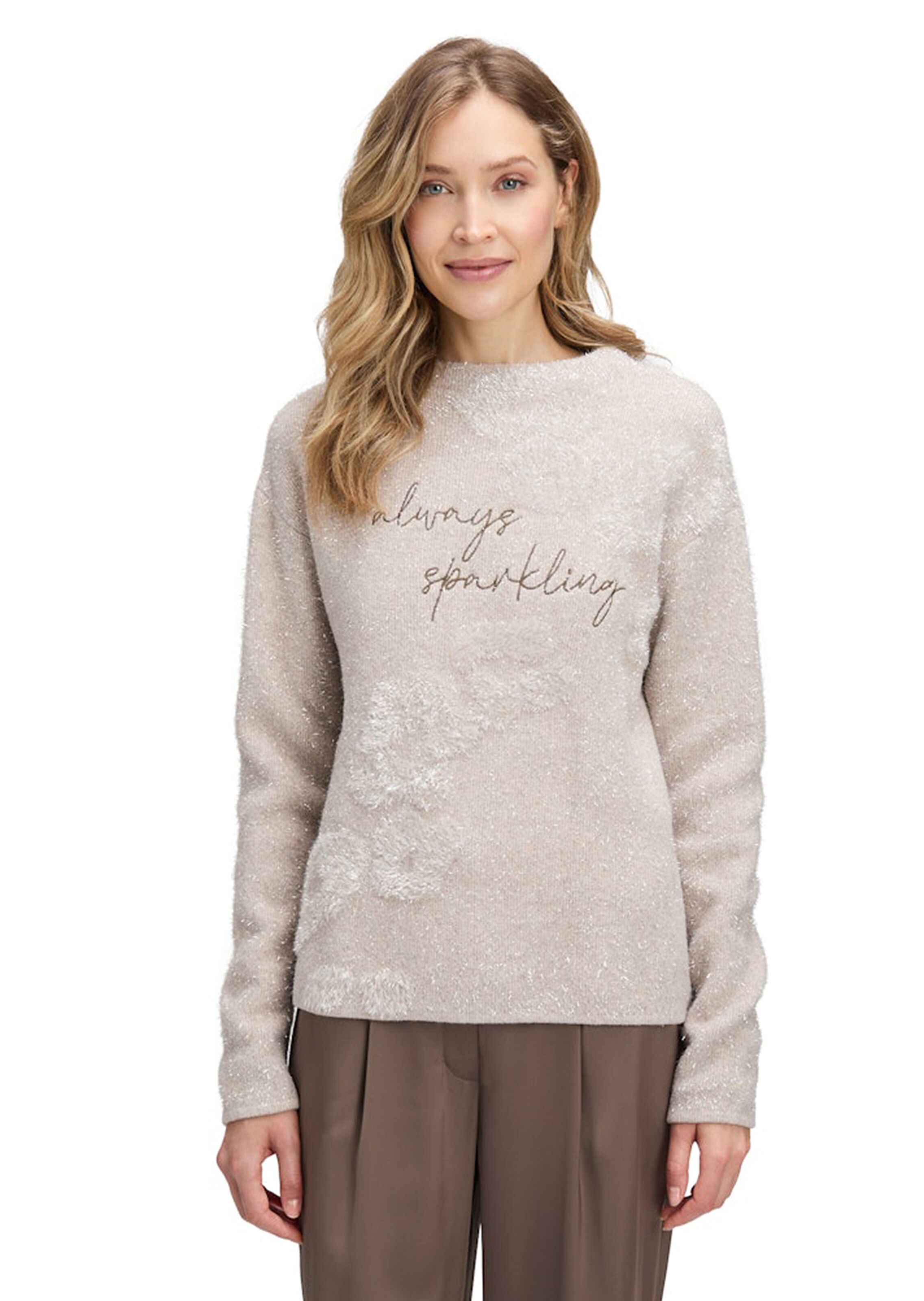 Pull BETTY BARCLAY coupé dans un mélange de coton ultra doux, qui chouchoute la peau avec un confort exceptionnel. Le motif léopard ton sur ton tricoté en fil brillant duveteux est merveilleusement subtil. L’inscription « always sparkling » à l'avant est tout un concept : avec ce modèle, vous brillez au plus haut niveau. Col montant, manches longues. Longueur env. 66 cm en 46.