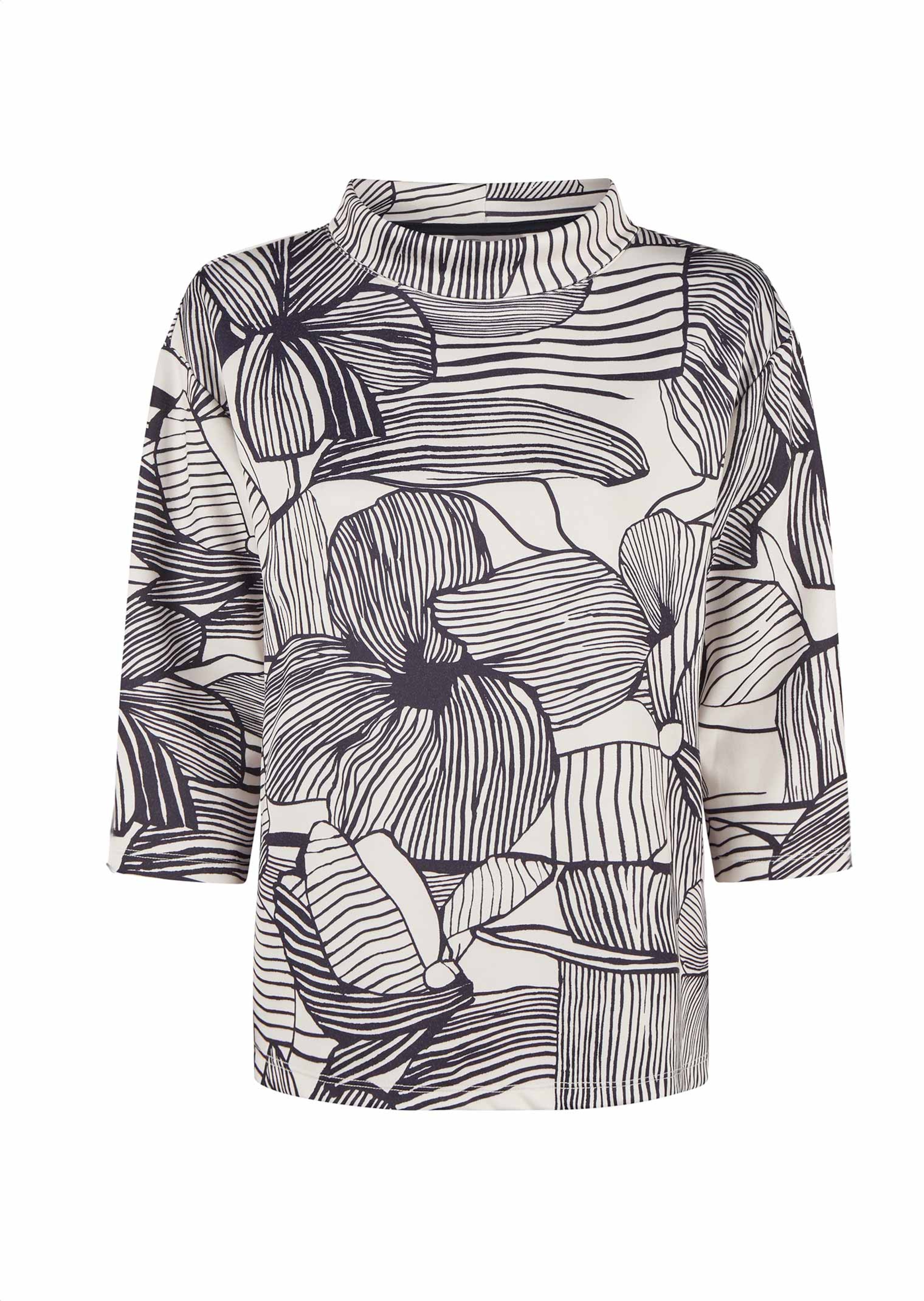 Sweat-shirt BARBARA LEBEK avec imprimé floral graphique. Coupe droite, tendance, avec col montant dégagé, manches 3/4 et emmanchures tombantes. En jersey assez ferme de bonne tenue, très lisse et agréable au toucher. Longueur env. 65 cm en 46.