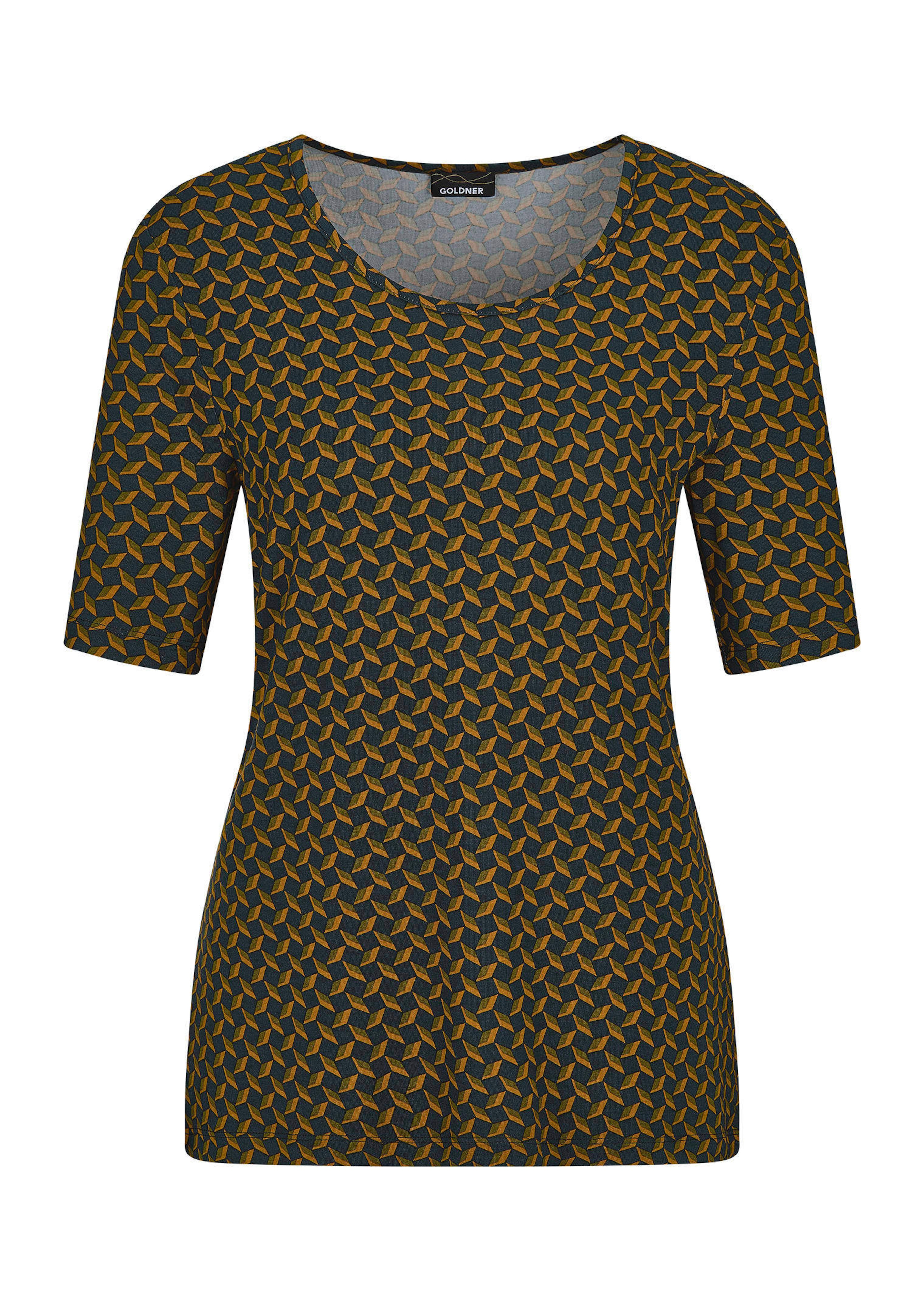 T-shirt en jersey de viscose extensible, confortable et agréable au toucher. Un partenaire résolument féminin pour tous les jours, avec imprimé graphique intégral. Entretien aisé. Encolure arrondie et manches mi-longues. Longueur env. 64 cm en 46, env. 60 cm en 23.