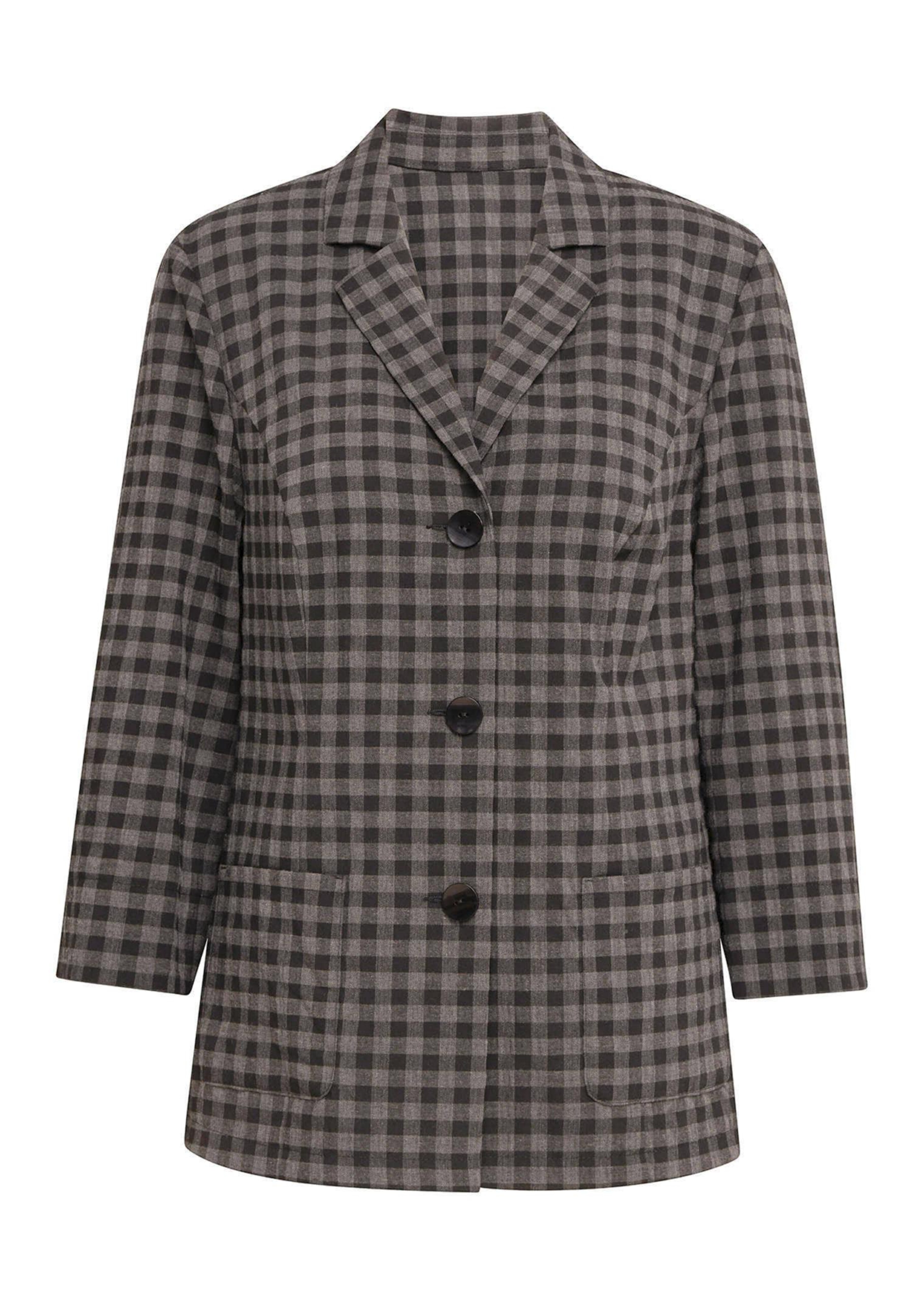 Par sa légèreté et son confort, la matière qui compose ce blazer fait penser à du seersucker ou du lin. Très élégant et polyvalent, ce modèle fait merveille avec de nombreuses tenues différentes. Col à revers classique, manches 3/4, poches plaquées, fermeture par trois boutons. Longueur env. 67 cm en 46, env. 63 cm en 23.