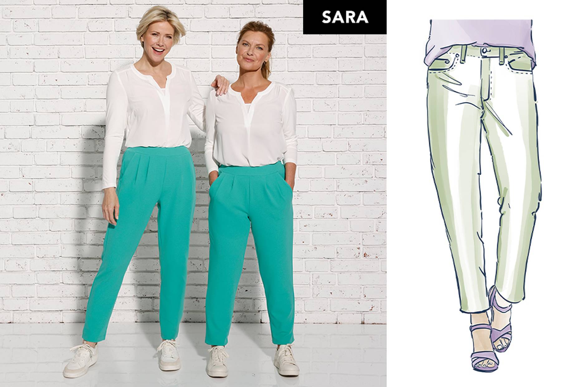 Essayez notre pantalon décontracté : SARA offre une coupe légèrement ample au niveau des cuisses et se resserre délicatement vers le bas – cette silhouette conique est emblématique des modèles sport comme les jogpants ou les cargos.