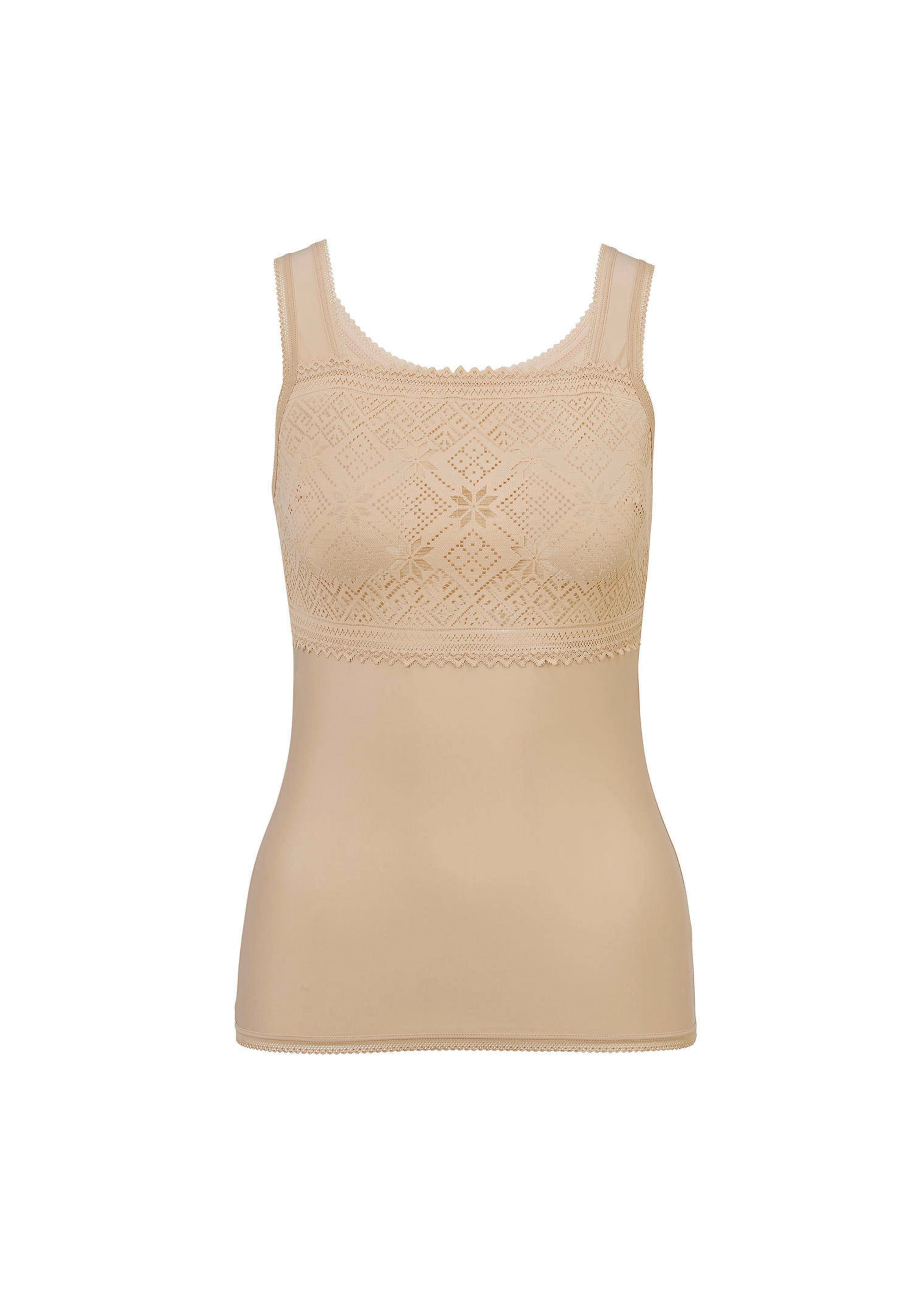 Légère et agrémentée à l'avant d'une large dentelle, la chemise en WinCool, une matière extensible et douce, procure une agréable sensation de fraîcheur sur la peau. Parfaite sous un vêtement ainsi que pour dormir, elle présente un bord en dentelle à l'encolure, aux emmanchures et au bas. Existe en deux doubles tailles de bonnets.