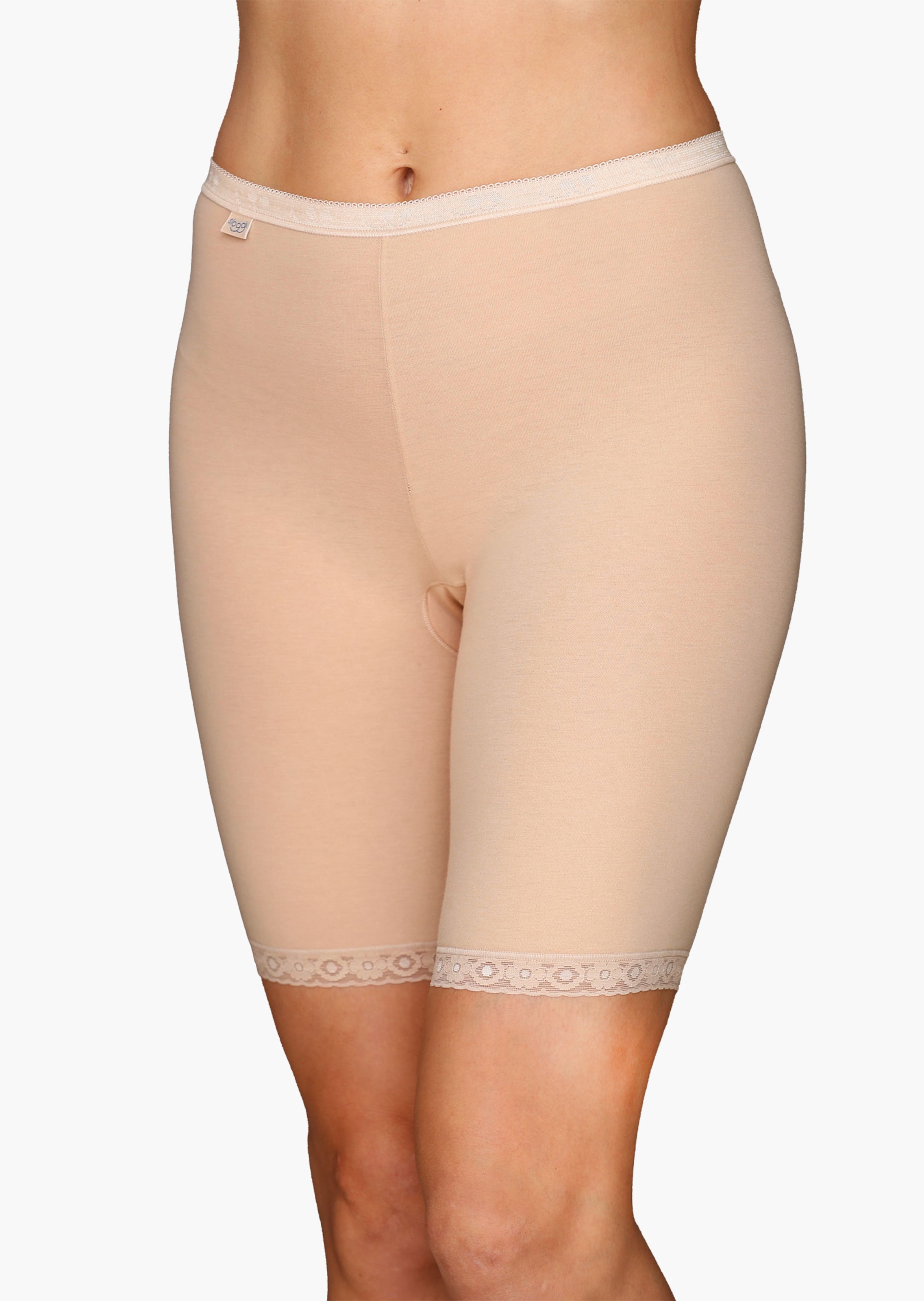 Panty long de SLOGGI. Confortablement élastique et légèrement galbant, il sculpte une jolie silhouette. La matière de qualité en coton et Lycra s'ajuste à merveille et procure un grand confort. Les bords en dentelle sont souples et bien extensibles. Taille élastique lisse et entrejambe.