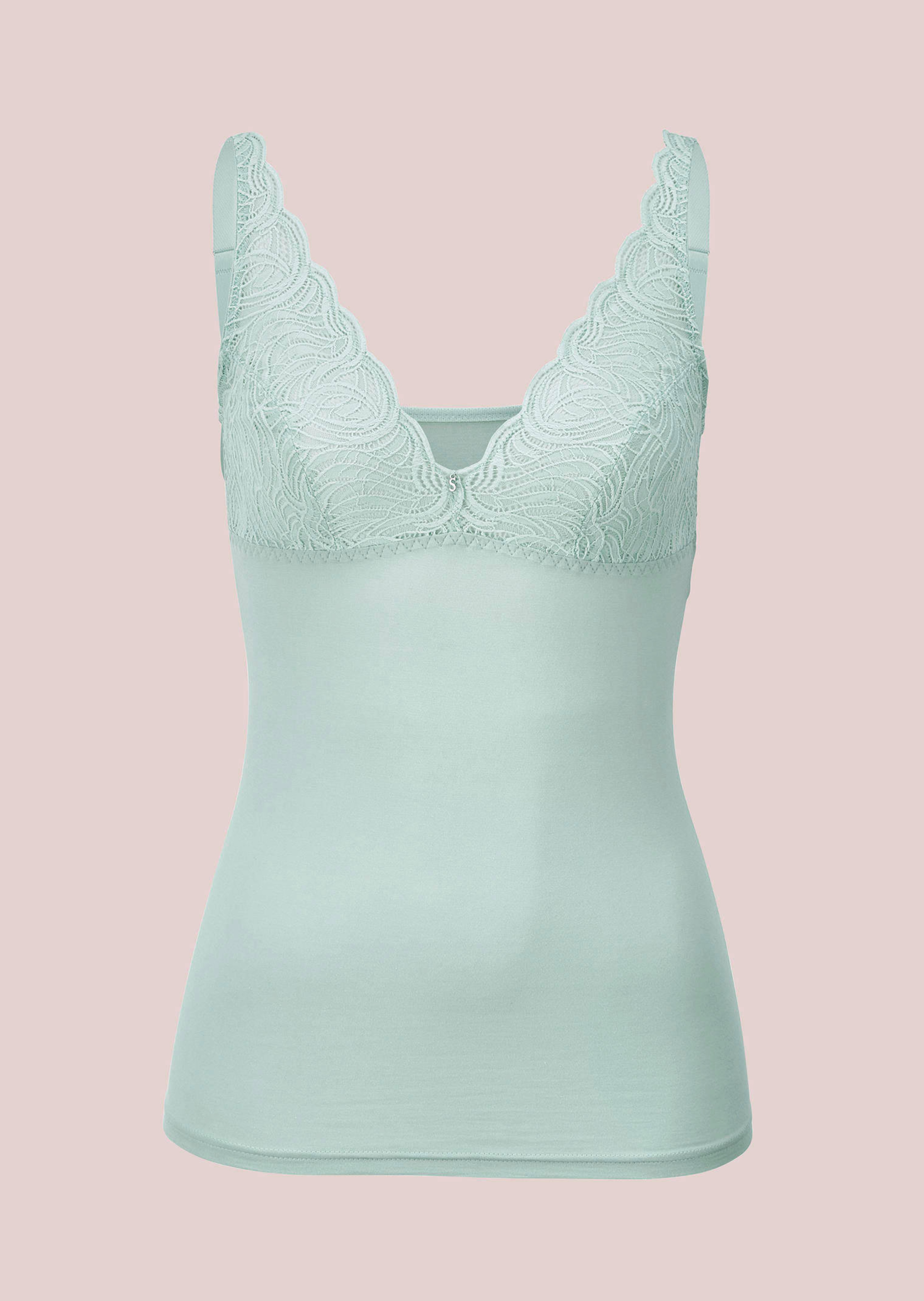 Caraco sans armatures SPEIDEL, chic et fonctionnel. Bonnets en 2 parties en dentelle extensible, partiellement doublés, et bande de renfort intégrale sous la poitrine qui offre un maintien parfait. Bretelles réglables au dos et côtés sans coutures pour une silhouette lisse. Modèle respirant d'une tenue irréprochable grâce à la matière riche en coton. Idéal pour tous les jours.