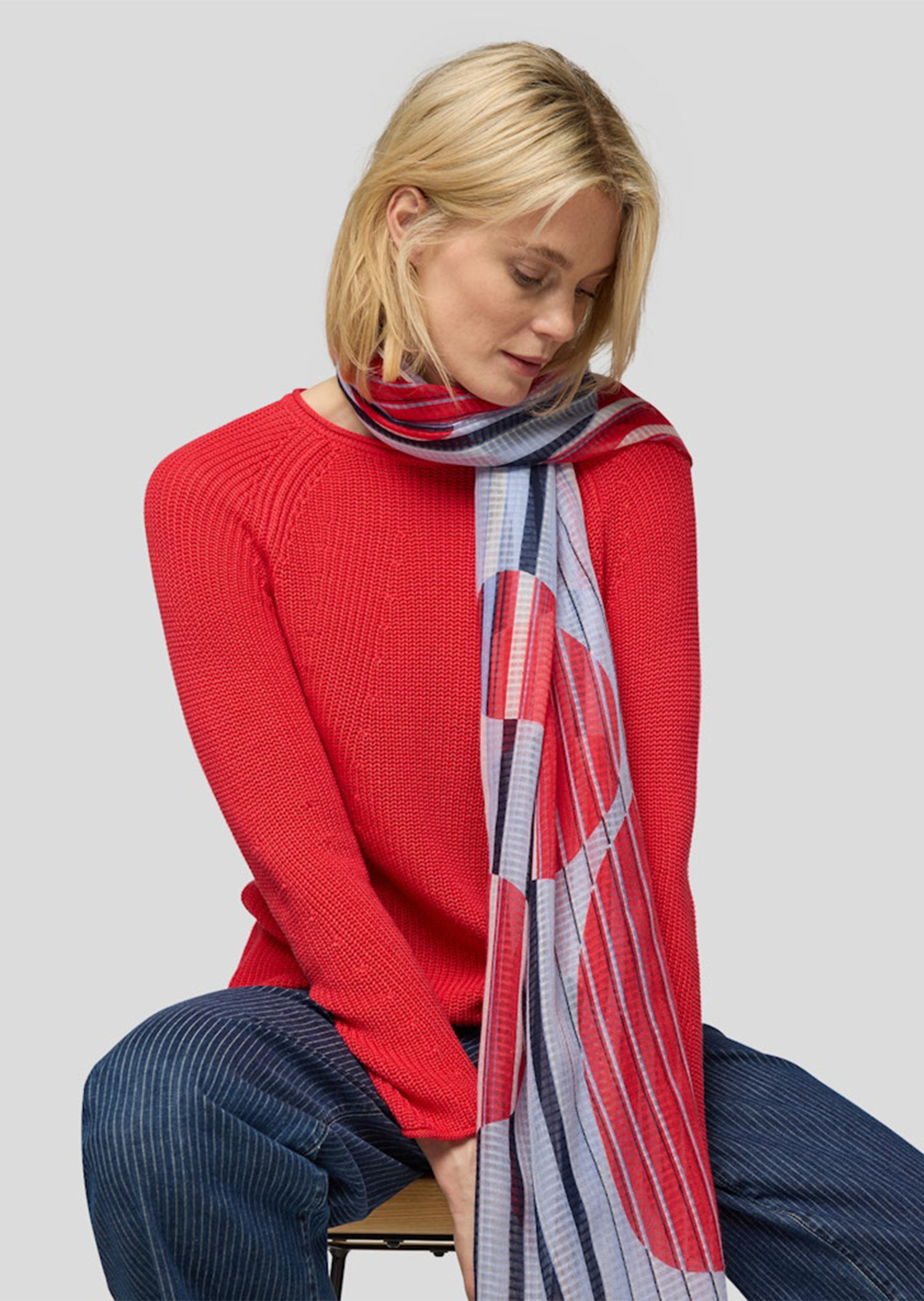 Schaltuch von RABE, das mit seinem maritimen Streifen-Dessin und den lebendigen Rot-Blau-Tönen für Urlaubsstimmung sorgt. Die kleine Fransenkante verleiht dem Tuch eine besondere Note und unterstreicht die Leichtigkeit, die die luftige, pflegeleichte Qualität mit sich bringt. Ob am Strand oder als stilvolle Ergänzung zum City Look – dieses Tuch ist ein echtes Must-have. Länge x Breite: ca. 180 x 70 cm.