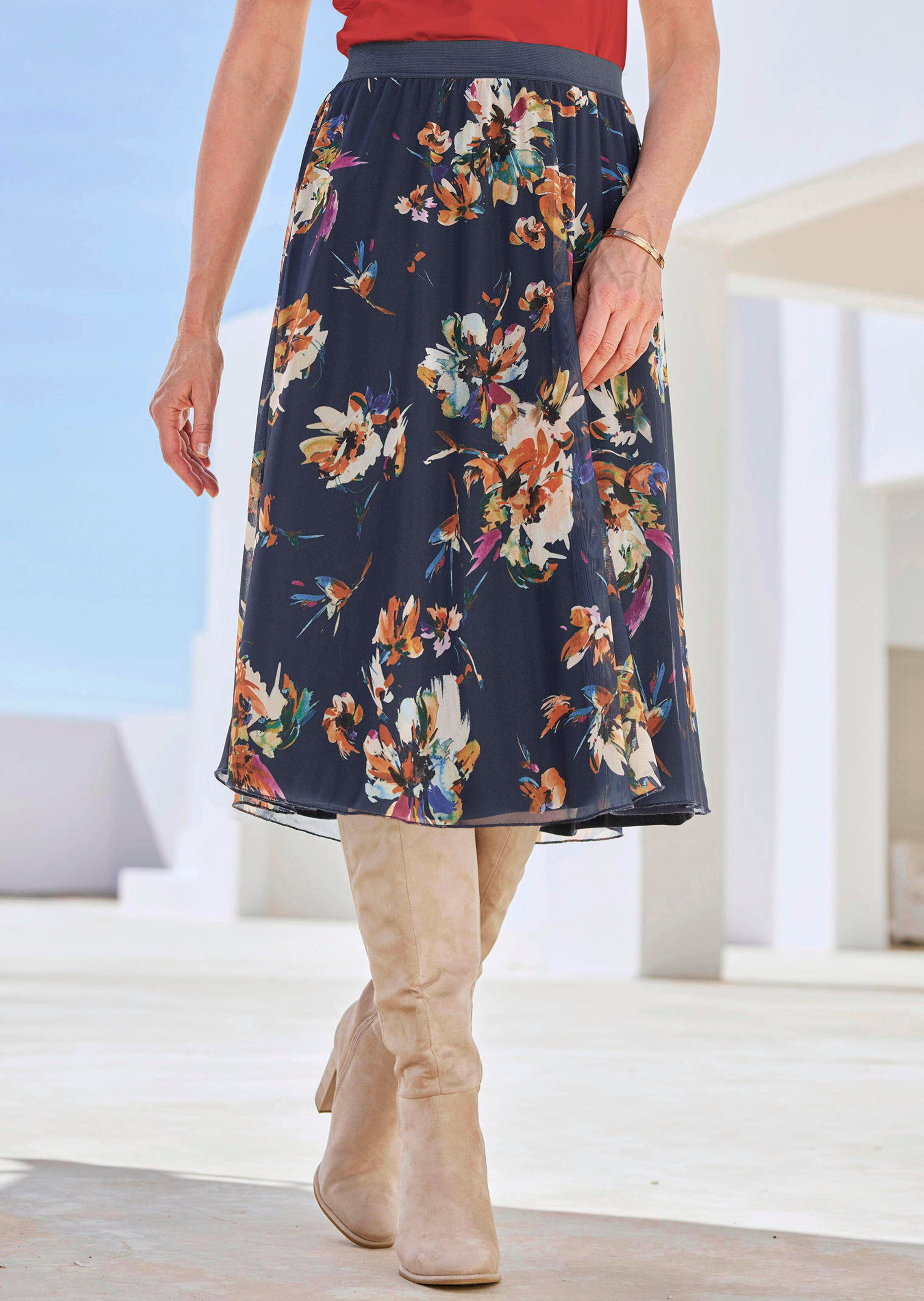 Jupe en tissu filet qui apportera du peps à vos tenues tout au long de la saison. Ample et flatteuse, très agréable à porter, elle adopte une coupe évasée qui flatte la silhouette. Confection soignée en tissu filet ultra léger avec doublure opaque en jersey qui ne laisse rien transparaître. Taille élastique lisse pour une discrétion absolue sous les vêtements. Ravissant imprimé floral, facile à combiner, aux couleurs lumineuses qui chassent la grisaille en un clin d’œil ! Longueur env. 68 cm en 46, env. 64 cm en 23.