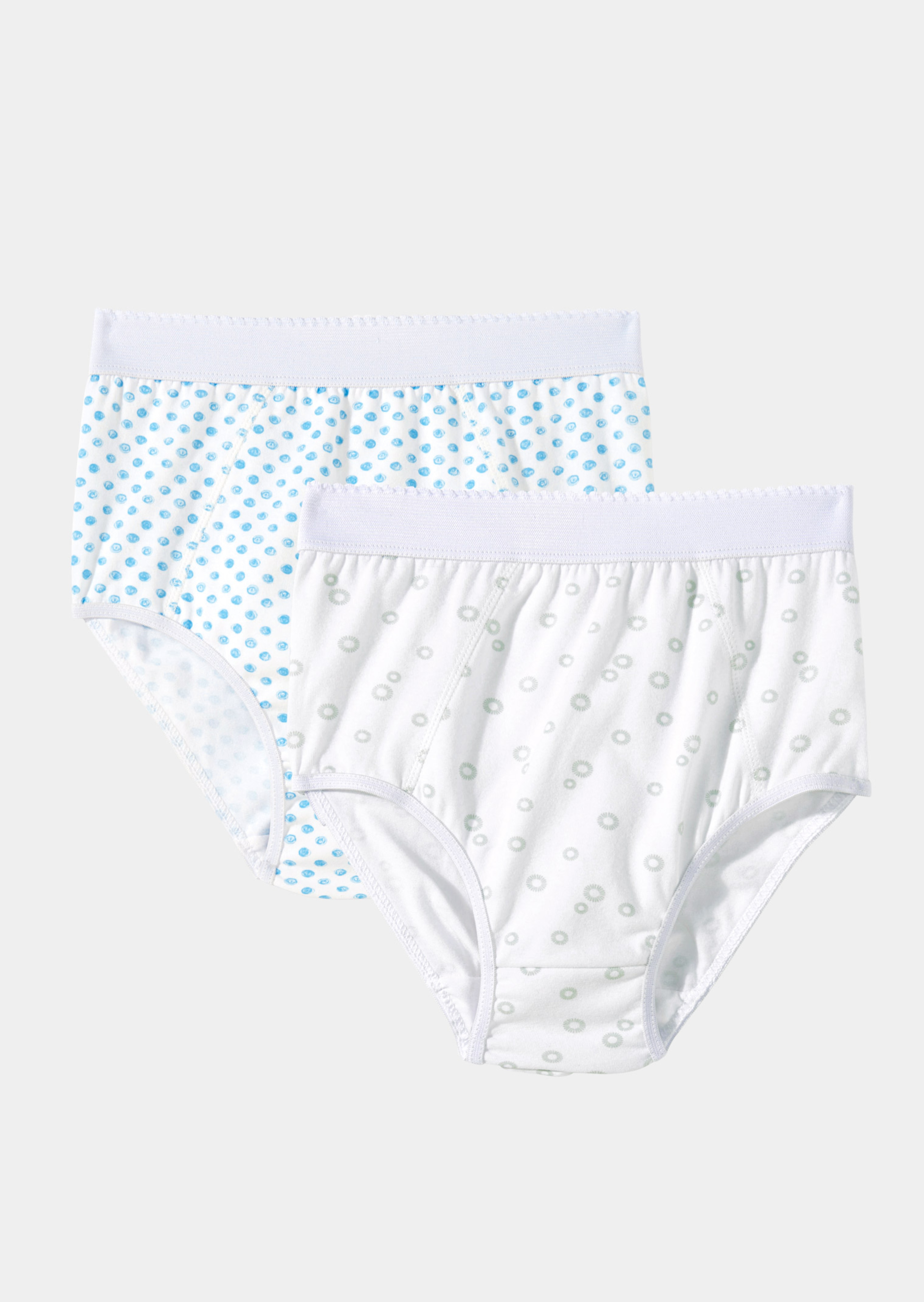 Slip « ventre plat » en lot de 7. Lot composé de 3 slips bleu-blanc, 3 slips gris-blanc à pois et d’un slip blanc. Devant avec plastron gainant à effet « ventre plat », taille haute jusqu’au nombril, côtés très larges et découpe des jambes droite à finition élastique garantissant un confort optimal. Ne comprime pas. En jersey ultradoux avec teneur en coton. Fond en coton, double épaisseur.