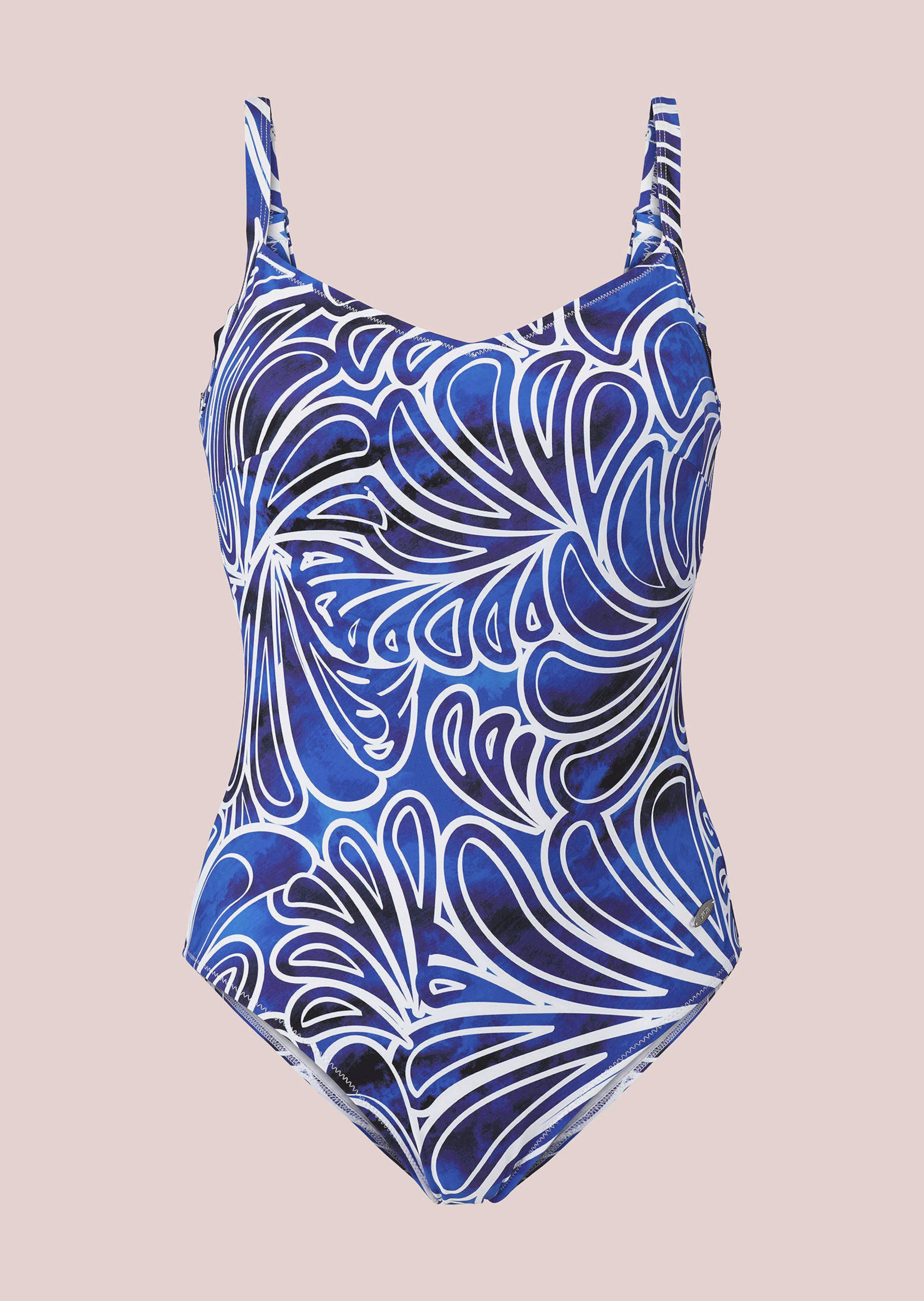 Maillot de bain SUSA sans armatures, avec coques souples intégrées pour un modelage en douceur, bande de renfort souple sous la poitrine et bretelles réglables qui offrent un ajustement et un confort parfaits. Style féminin, avec motif fleuri abstrait aux tons harmonieux. Décolleté droit au dos. Un modèle confortable et stylé pour la plage ou la piscine.
