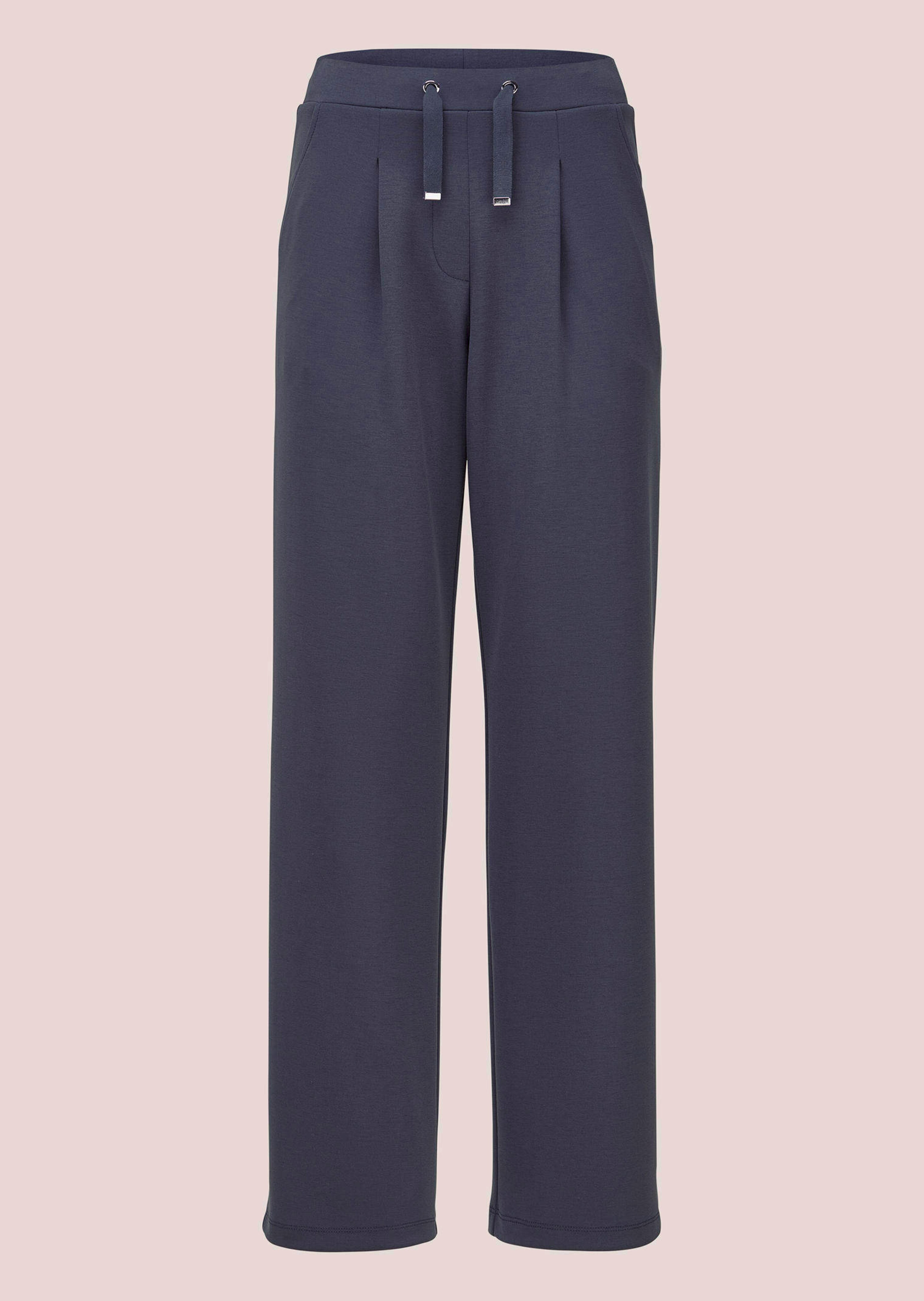 Parfait pour les looks décontractés: le pantalon de loisirs au tombé souple et agréable, en viscose douce avec de l'élasthanne pour une tenue irréprochable. Large taille élastique réglable par cordon de serrage. Poches et faux zip. Modèle à la coupe droite, facile à coordonner avec un top, un chemisier ou un T-shirt.