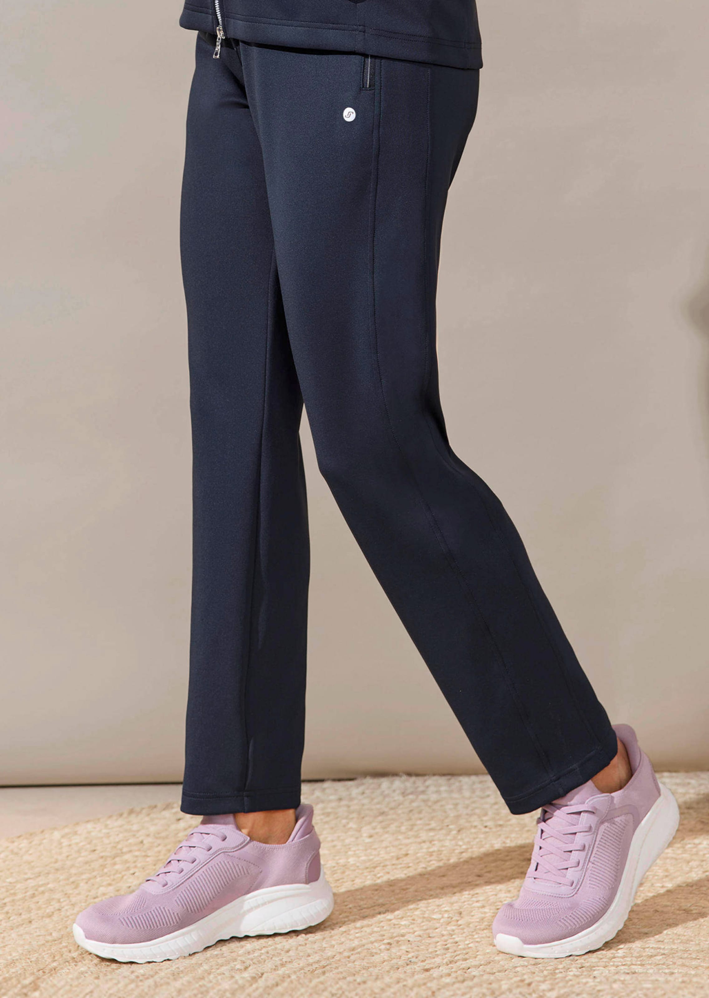 Pantalon de jogging en matière fonctionnelle souple avec de l'élasthanne, qui offre un agréable confort et une liberté de mouvement optimale. Fins empiècements ton sur ton sur les côtés, pour une ligne élancée. Taille lisse entièrement élastiquée, réglable par ruban de serrage, et deux poches zippées. Modèle confortable pour les journées actives.