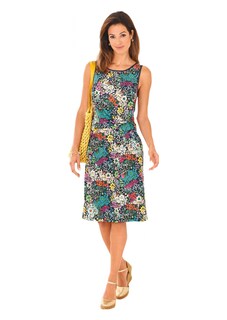 Cette robe imprimée se pare d'un noeud décoratif sur le côté - un détail à la fois mode et avantageux pour la silhouette. Le motif floral se distingue par ses nombreux coloris éclatants et donne une allure très estival au modèle. Féminin et facile d'entretien, cette robe sans manches se distingue également par ses passepoils contrastants à l'encolure arrondie et aux bretelles. Très agréable à porter et parfait en voyage, elle ne craint pas de séjourner dans une valise. Longueur env. 102 cm en 46, env. 96 cm en 23.