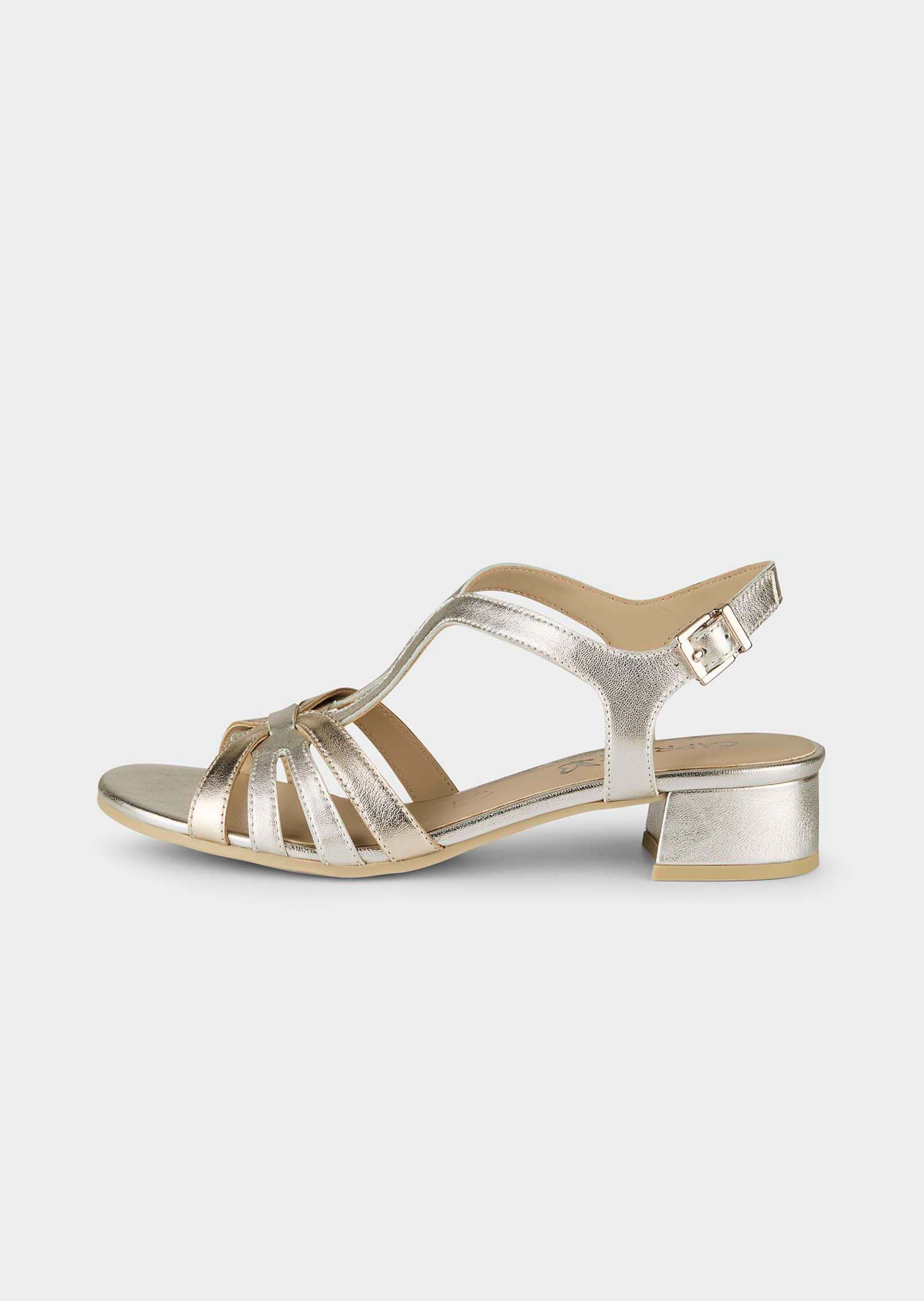 Sandalettes CAPRICE séduisantes, très élégantes. Avec brides en cuir doux réglables par boucle, garantissant un chaussant parfait. La première en cuir et synthétique ainsi que la semelle extérieure antidérapante garantissent un confort optimal. Talon bloc de hauteur modéré.