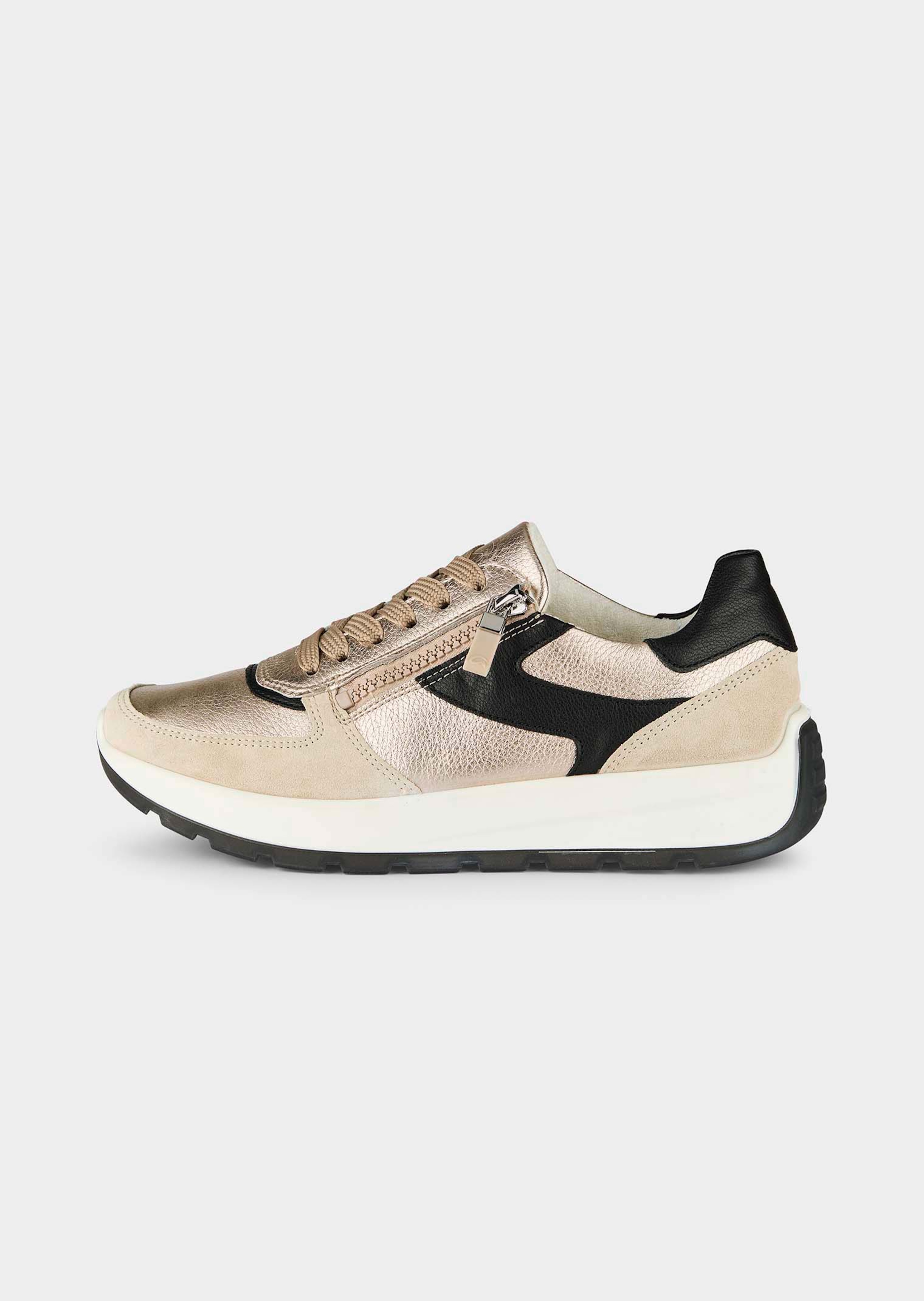Sneakers « New York » de ARA. Mix de coloris et de matières raffiné. Avec détails en cuir doux et finition intérieure en éponge qui entoure le pied en tout confort. Look décontracté avec lacets et zip. Faciles à enfiler et à retirer. Voûte plantaire amovible HighSoft rembourrée garantissant un confort hors pair. Semelle extérieure PU/TPU antidérapante.