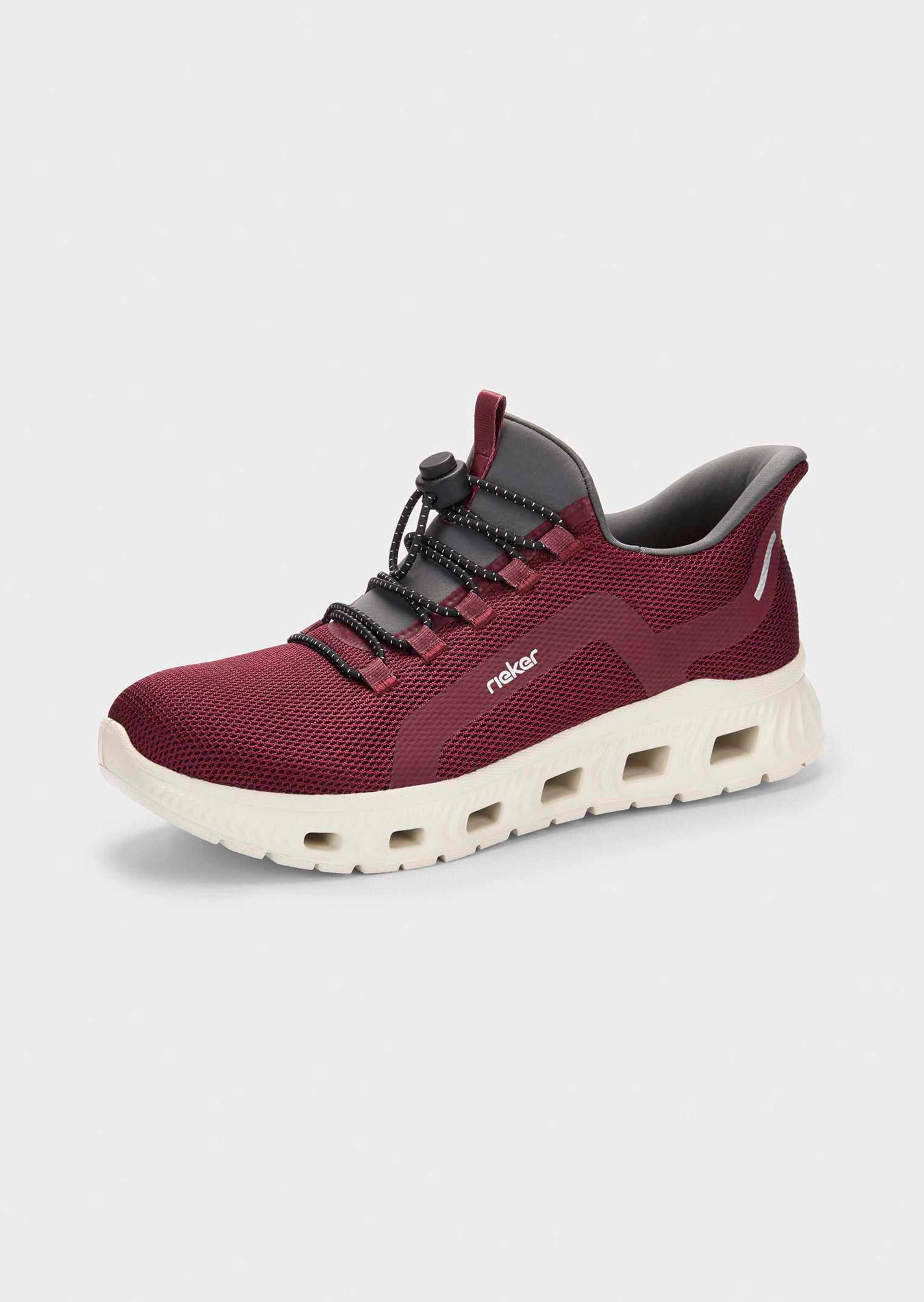 Sneakers RIEKER à laçage rapide. Fonction innovante Ready2Go avec partie arrière stable permettant d’enfiler la chaussure sans les mains. Semelle intérieure rembourrée MemoSoft. Dessus : tissu filet. Doublure et première en textile. Semelle extérieure EVA, légère et bien souple.