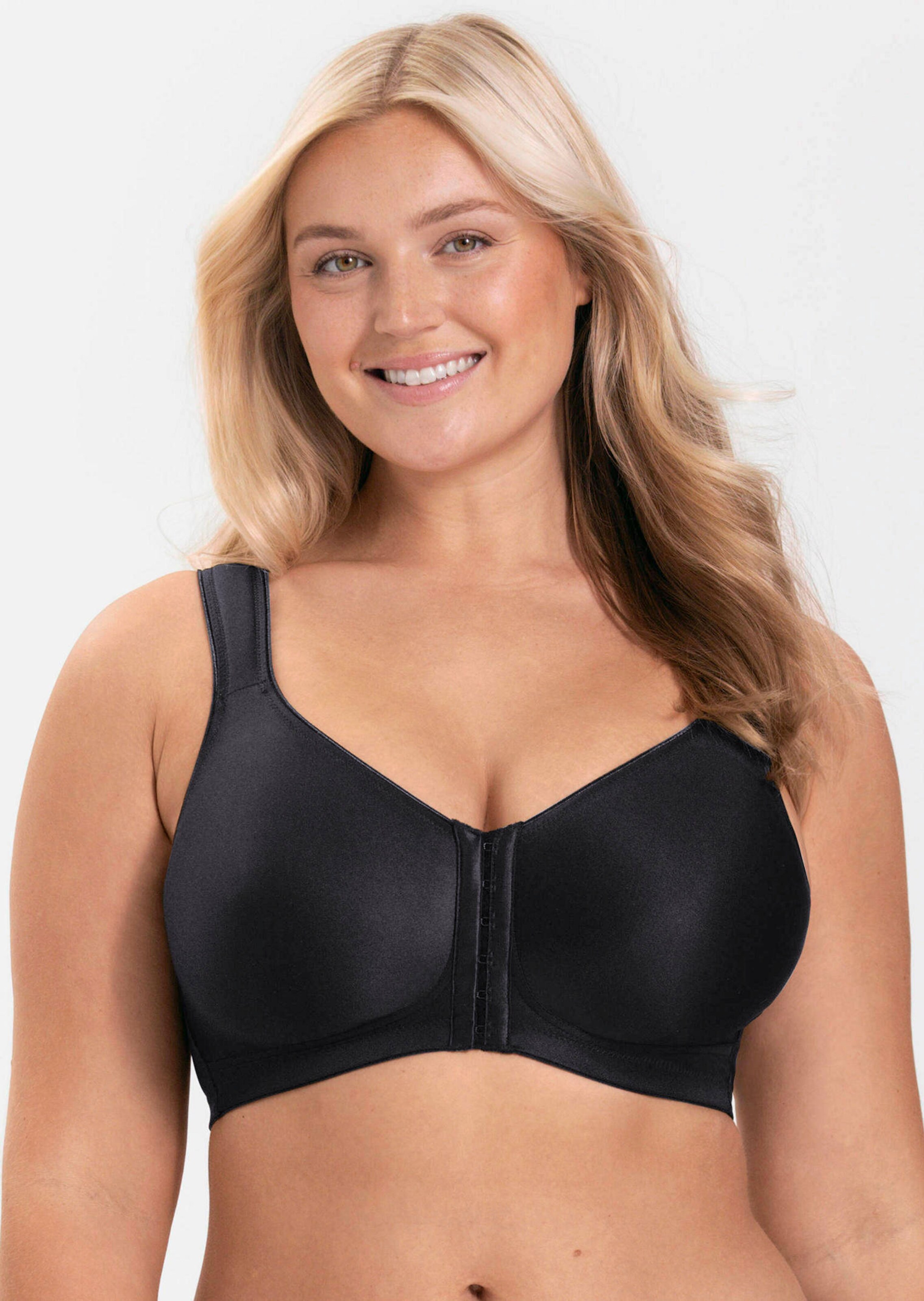 Soutien-gorge facile à enfiler et à retirer grâce à la fermeture à l’entrebonnet. Modèle sans armatures avec bande sous poitrine légèrement doublée et bonnets sans coutures garantissant une discrétion absolue sous les hauts moulants. Les larges bretelles rembourrées, réglables au dos, délestent les épaules à la perfection. Dos haut qui enveloppe agréablement le buste, avec bretelles placées plus au centre afin d’éviter qu’elles ne glissent. Matière technique, respirante.