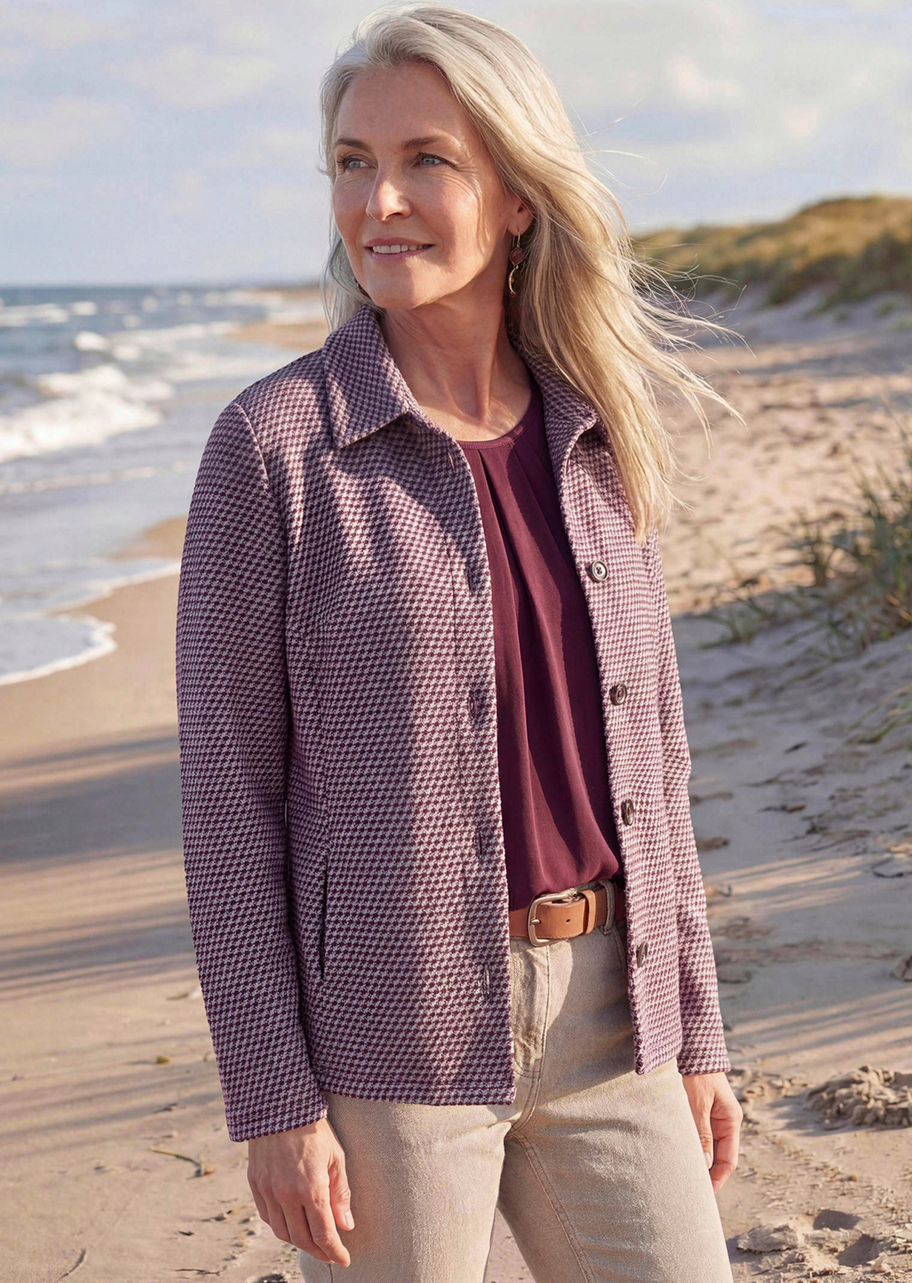 Veste décontractée, façon surchemise. Idéale au-dessus d’un T-shirt ou d’une blouse. Motif pied-de-poule minimaliste facile à associer. Avec col chemise, boutonnage pressionné avec boutons, coloris métal, et manches longues. Découpes astucieuses, devant, et poches. Finitions droites. Jersey extensible agréable à porter avec teneur en coton et viscose. Longueur env. 64 cm en 46, env. 61 cm en 23.