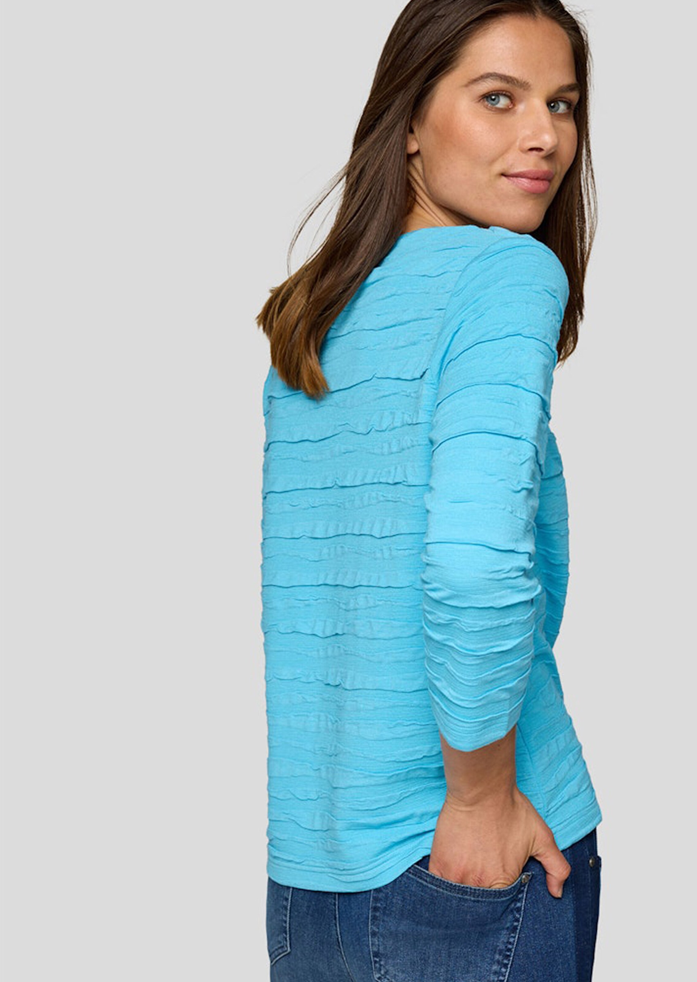 T-shirt structuré RABE en jersey de viscose, agréable à porter. Entretien aisé. Modèle facile à combiner pour tous les jours avec motif ondulé à effet 3D. Coupe droite avec encolure arrondie et manches 3/4. Facile à associer avec un jean, un pantalon ou une jupe élégante. Longueur env. 66 cm en 46.